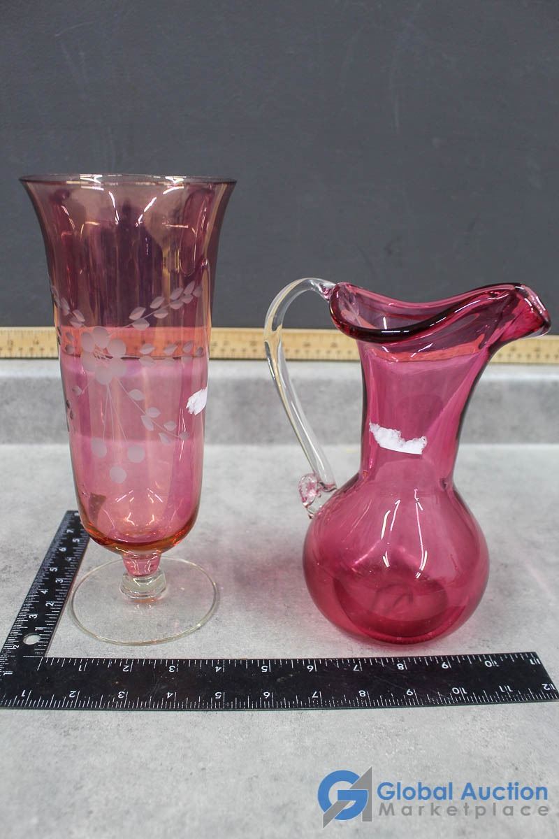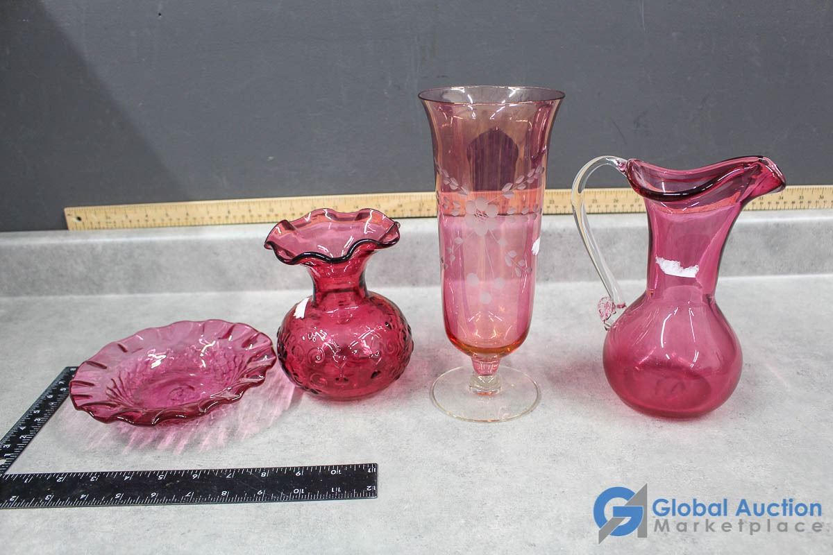 Pink Glass Vases, Pitcher & Dish Plate