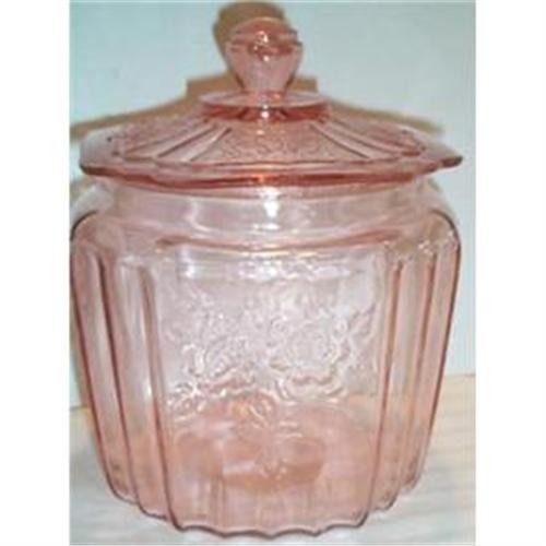This fantastic Pink Mayfair, Open Rose Depression Glass Covered Cookie Jar is in SUPERIOR condition with no chips, cracks, or dings. It measures 6" in diameter and stands about 7" tall to the top of its lovely finial. We guarantee this to be VINTAGE Mayfair.
