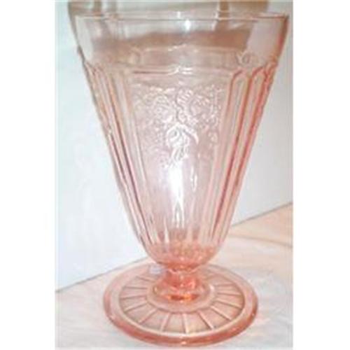 This fantastic Pink Mayfair, Open Rose, Depression Glass Footed Water Tumbler is in SUPERIOR condition with no chips, cracks, or dings and it measures 3.50" in diameter and stands 5.25" tall and will hold ten ounces of fluid. Mayfair was manufactured by Hocking Glass Company c: 1931-1937.
