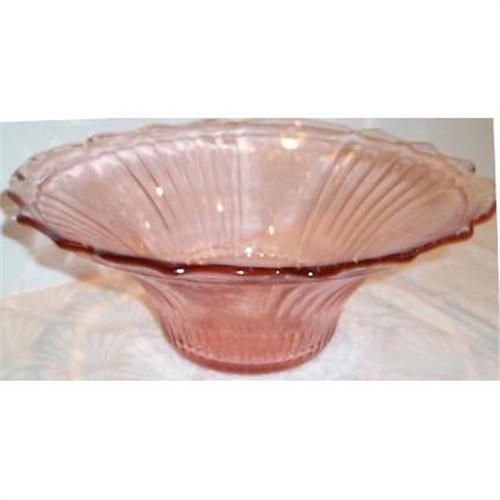 This very lovely pink Mayfair, Open Rose, Large Scalloped Fruit Bowl is in SUPERIOR condition with no chips, cracks, or dings and it measures 12" in diameter and stands about 4.50" tall. Mayfair or Open Rose was manufactured by Hocking Glass Company c: 1931-1937.