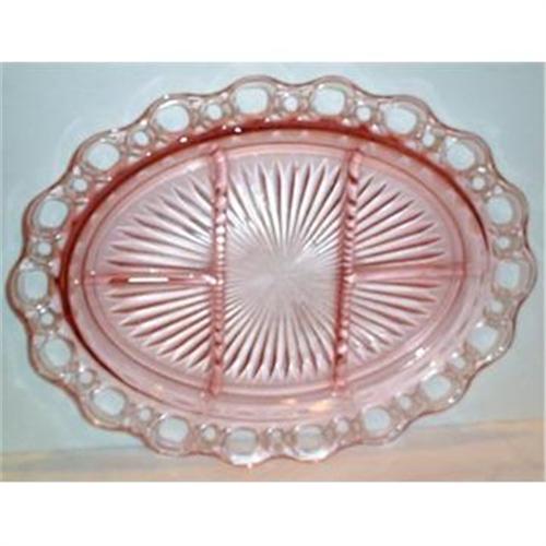 <tr><td>Title:Pink Old Colony Five Part Depression Platter</td></tr>