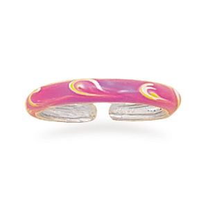 3mm pink with orange and white swirl enamel sterling silver toe ring. .925 Sterling Silver
