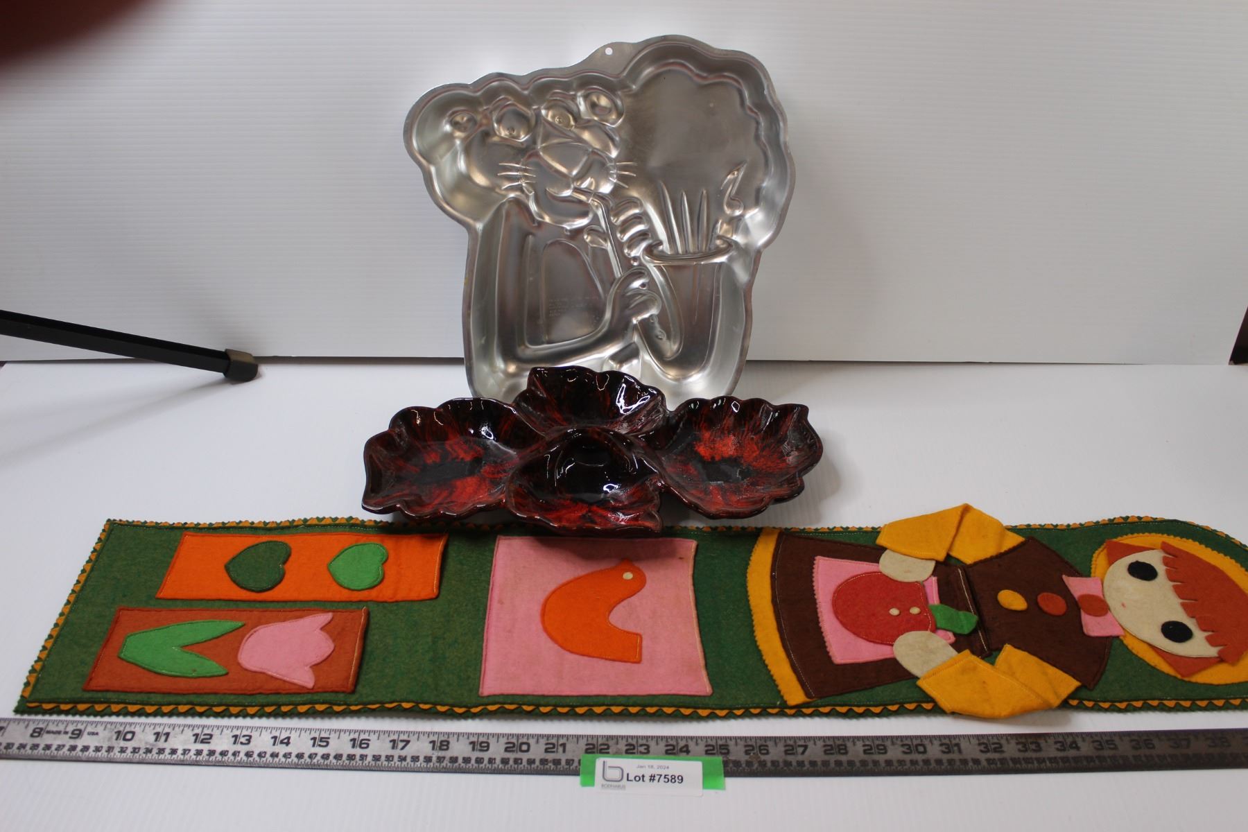 Pink Panther Cake Pan, Mid-Century Dip Server, Handmade Kitchen Banner