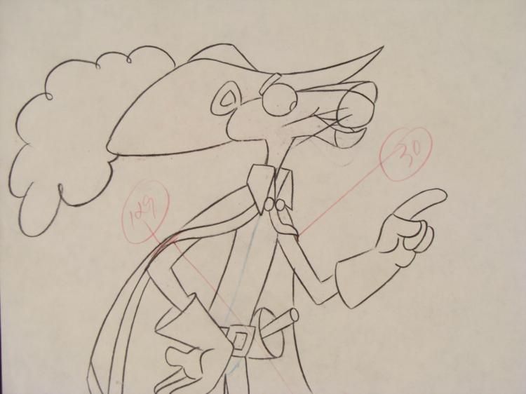 Here, it appears that the Pink Panther is a musketeer. This is an original drawing from the production of the Pink Panther cartoon show. * Drawing size: 10 1/2 x 12 1/2 inchesDetails: Numbers at the bottom edgeColor: Blue and black pencil * Condition: Very good *