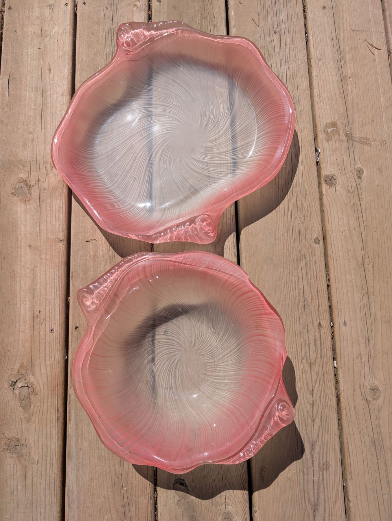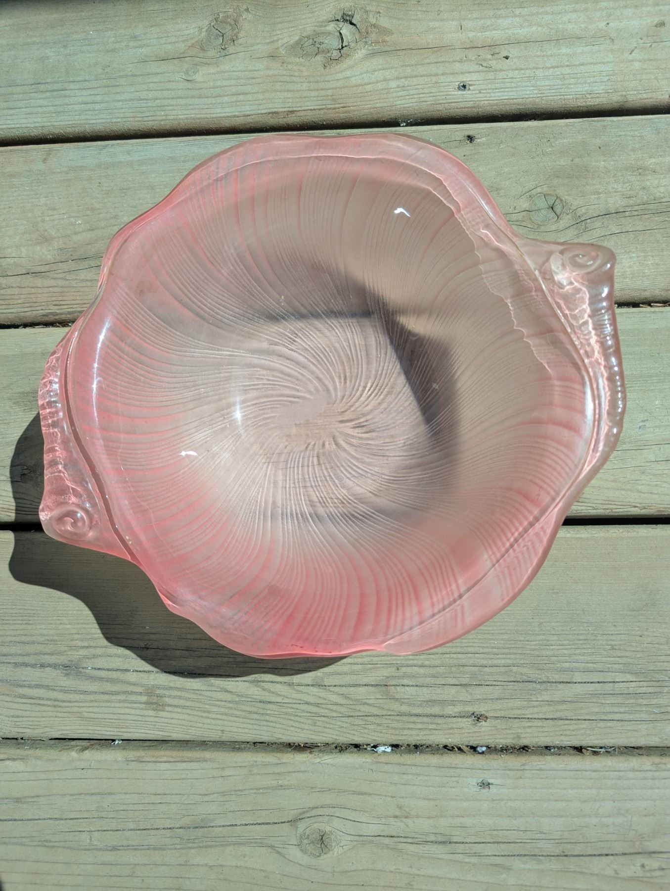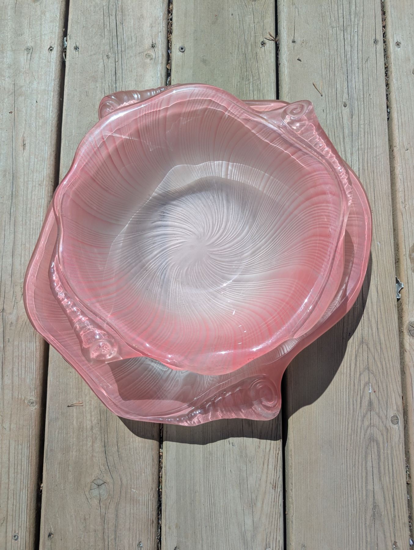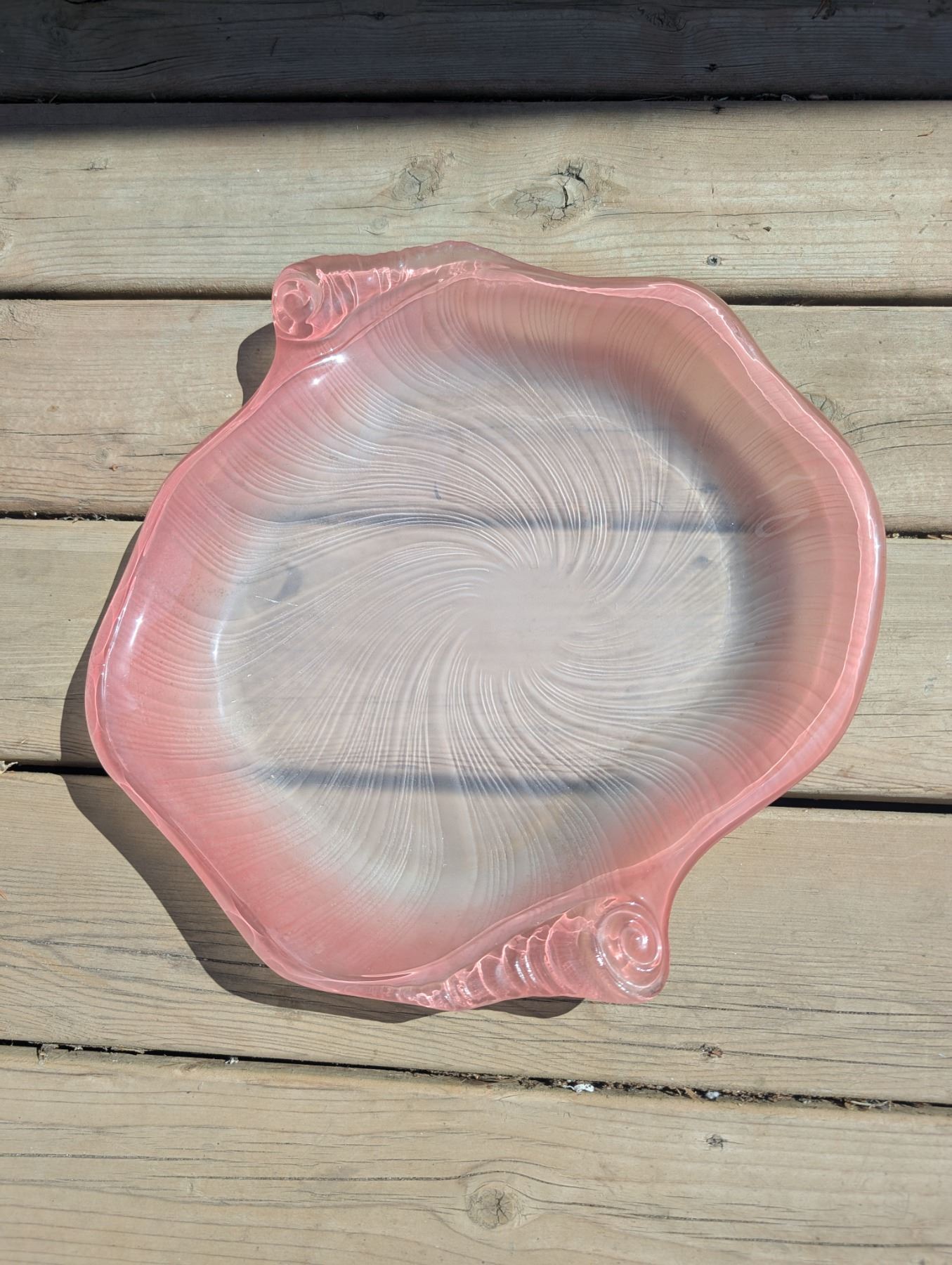 Pink / Peach Glass platter 16" x 14" and matching bowl 13" x 12" diameter