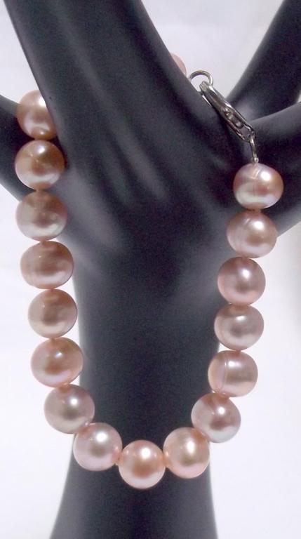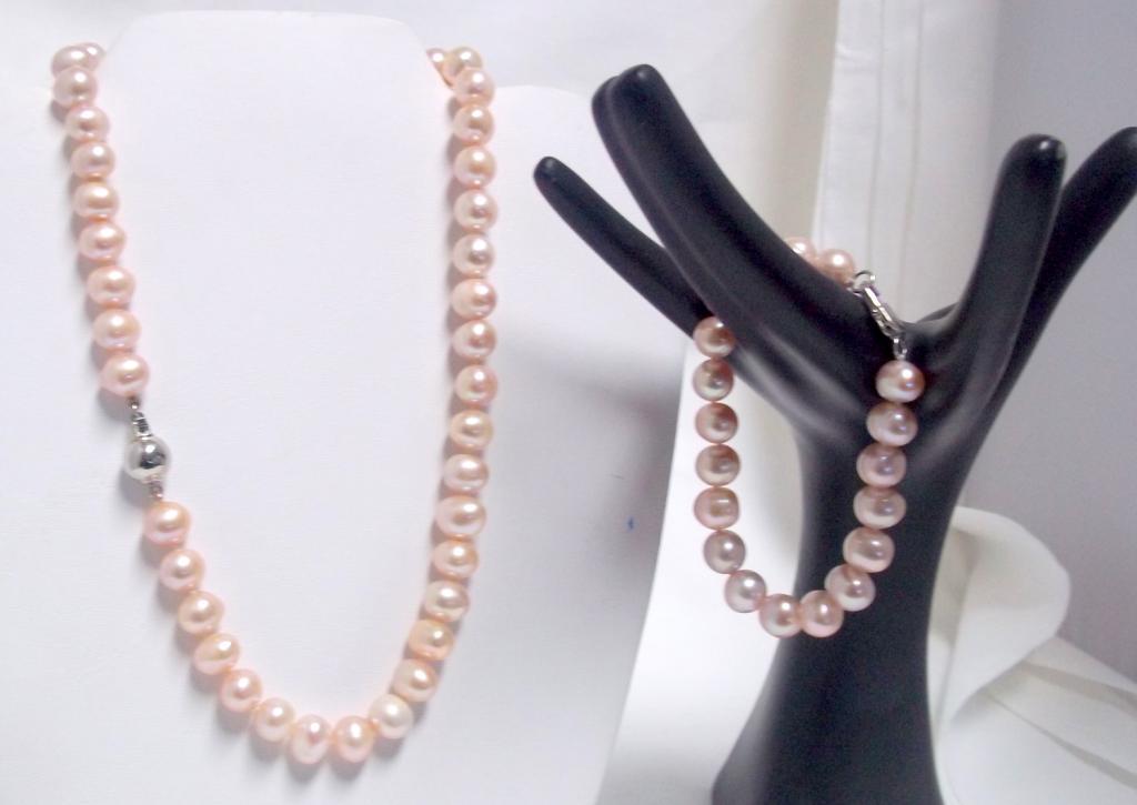 This gorgeous set includes a 16' single strand necklace and a 6.5" bracelet made with 10mm pink pearls. The retail value is $196- for the bracelet and $487- for the necklace.