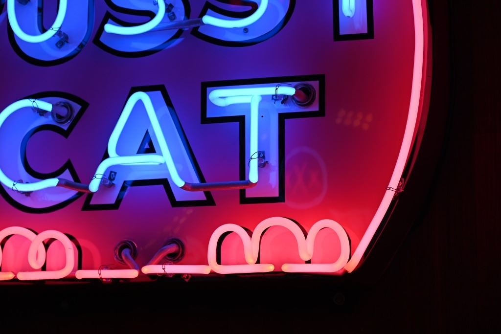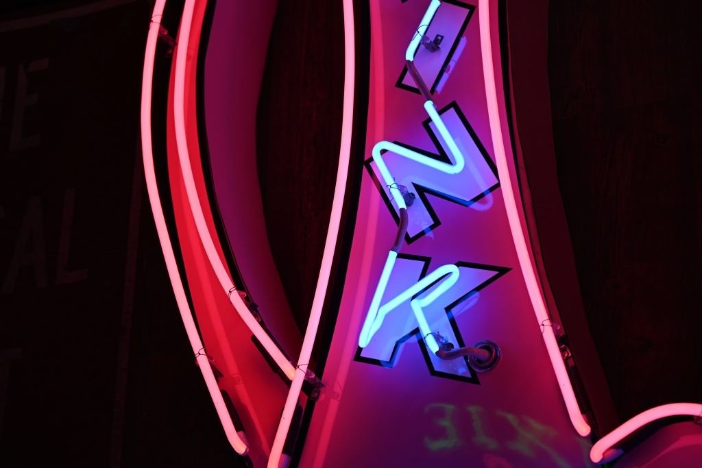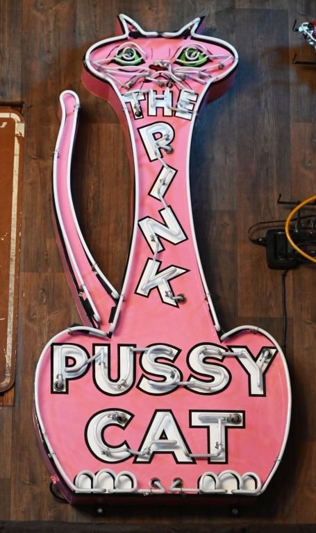 Unique modern neon sign scaled from original 18ft neon made by Industrial Neon Sign (Houston, TX) that adorned the first gentleman's club in downtown Houston in the early 1970s. Measures 26 inches wide x 4 foot tall.