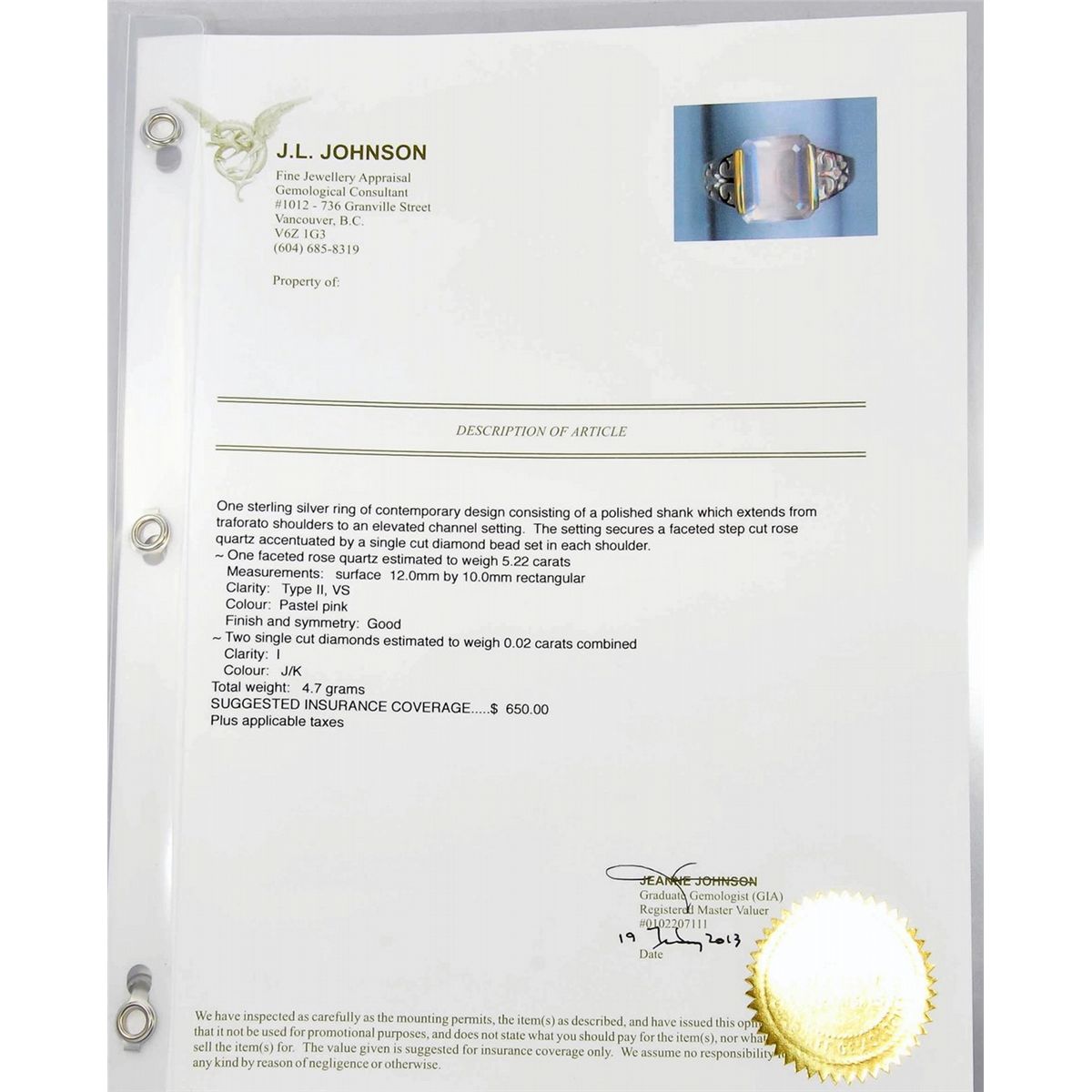 Includes 650 appraisal