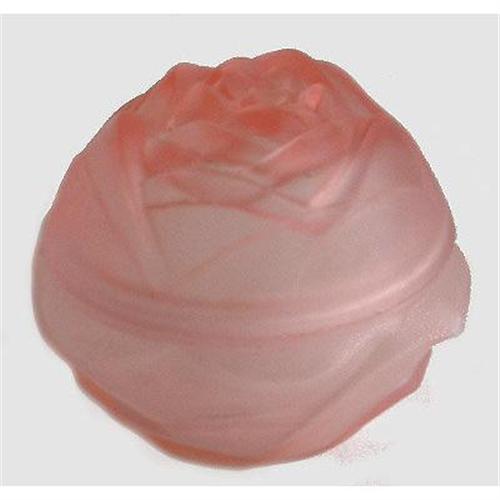 This very pretty Rose Blossom pink satin glass powder jar has such fine detail it is dificult to distinguish it from the real thing. Measuring 4 1/2" tall x 5 1/2" across and weighing nearly 3 lbs. This elegant Art Glass powder jar and its lid are both in excellent condition.