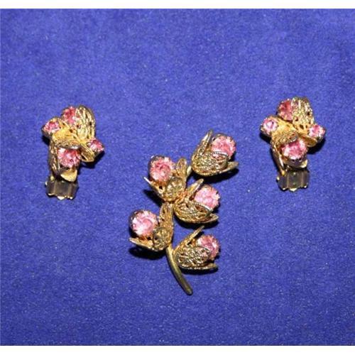 <tr><td>Title: Pink Rhinestone Filigree Brooch & Earrings</td></tr>