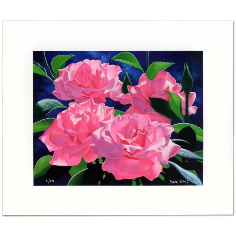 "Pink Roses" is a limited edition giclee on deckle-edge paper by Brian Davis, numbered and hand signed by the artist. Includes Certificate of Authenticity! Measures approx. 27" x 23" (with border), 20" x 16" (image).