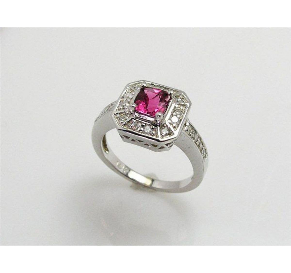 14kt White Gold 5.06 approx grams .66ct Intense Pink Sapphire emerald cut .38ctw Round Diamond G-H color VS-SI clarity size 6.5