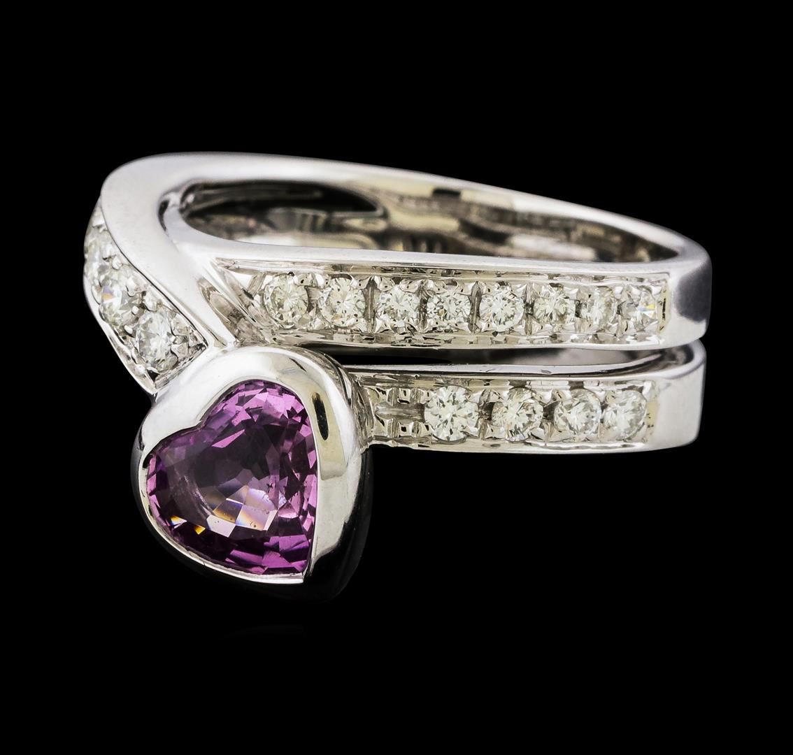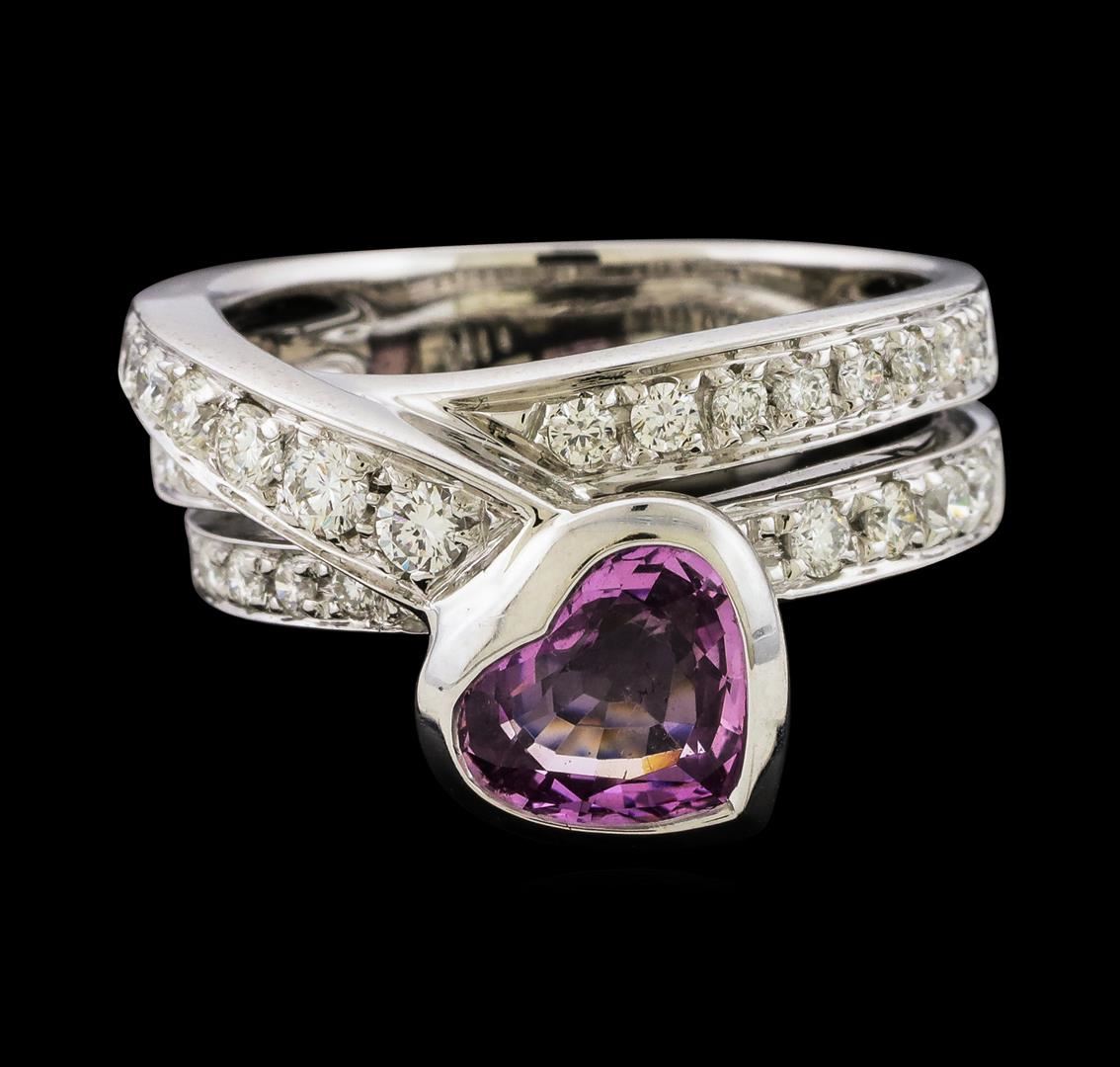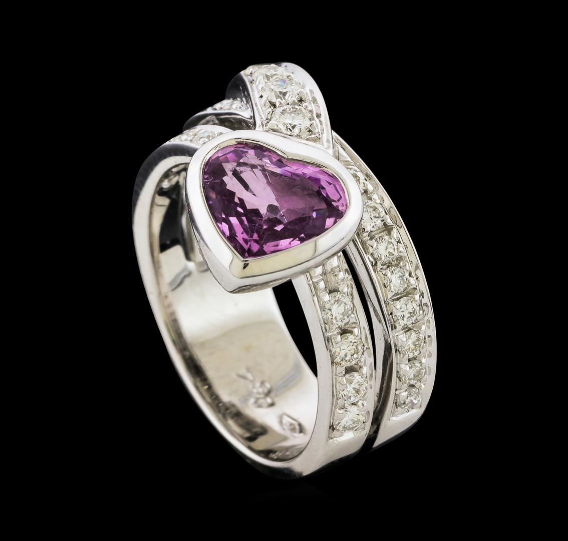 One ring featuring: 18KT White Gold containing Pink Sapphire and Diamonds. Total Weight of Ring: 10.4 grams.