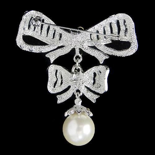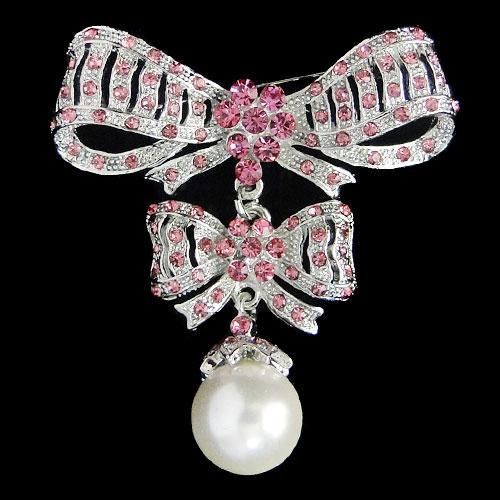 Pink Swarovski Crystal and Pearl Drop Knot Brooch Pin, measures approx 2 in length by 2 width mwf2056