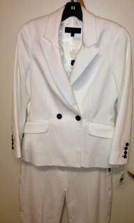 Two Button Waisted Blazer in White, Ankle Pant in White (Suit). Size 4.