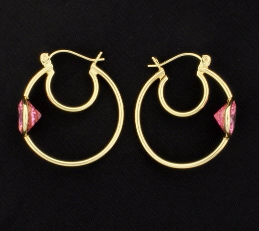 In 14K yellow gold they are 1 inch in diameter and have a unique double hoop design. They contain two 9mm pink topaz gemstone, with bright pink color and excellent clarity! 4.3g