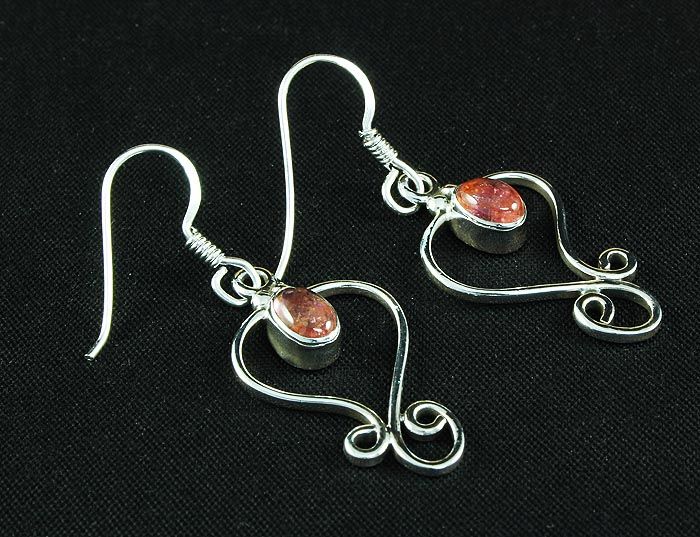 Pink Tourmaline 16.03ctw Cute Design .925 Earring **|**|** 1.58" Long Sterling Silver Dangling Hook Earring with a Cabochon Pink Tourmaline Gem Measuring 6x4mm Oval ; MSRP: $400