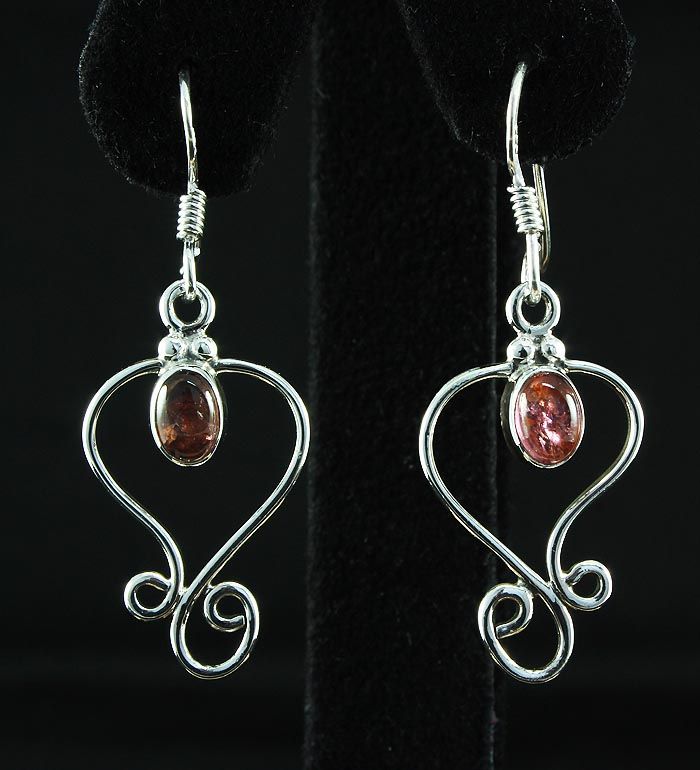 Pink Tourmaline 16.03ctw Cute Design .925 Earring **|**|** 1.58" Long Sterling Silver Dangling Hook Earring with a Cabochon Pink Tourmaline Gem Measuring 6x4mm Oval ; MSRP: $100