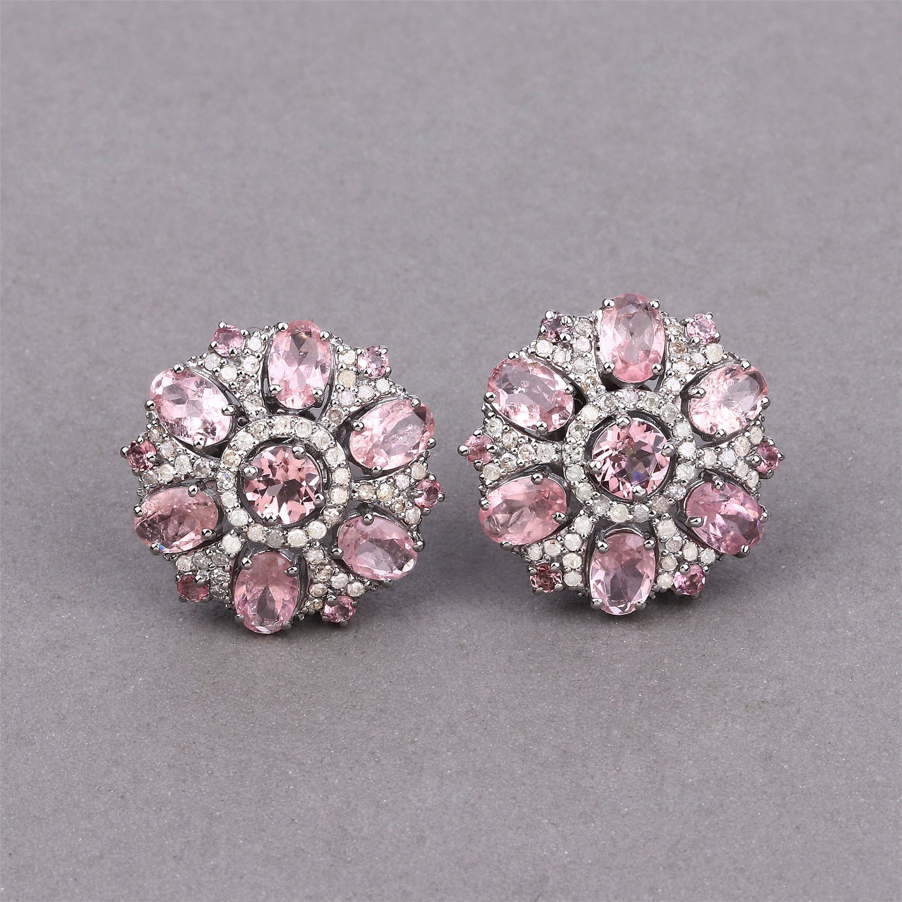 DESCRIPTION DETAIL: Genuine Pink Tourmaline & Earth Mined Diamond Post Earrings
