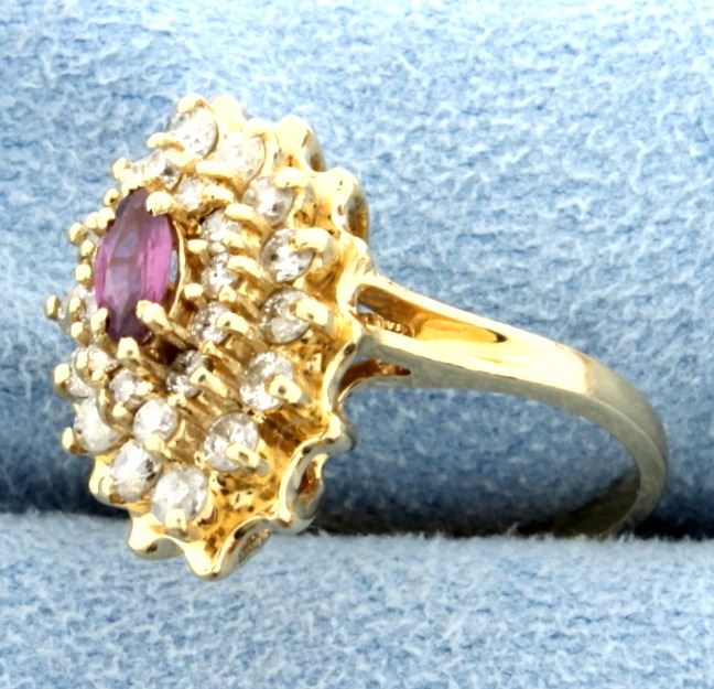 In 14K yellow gold with 2/3ct total weight of diamonds, I color/I clarity. The 6mmx3mm pink tourmaline is approx. .3ct. Size 6.5 4.6g