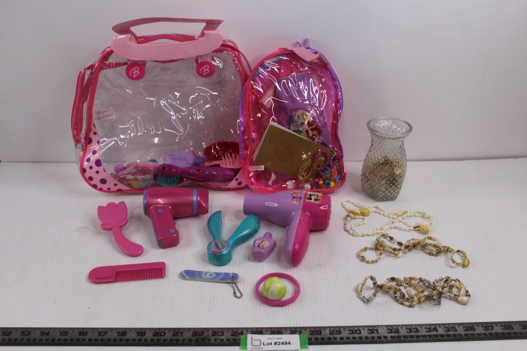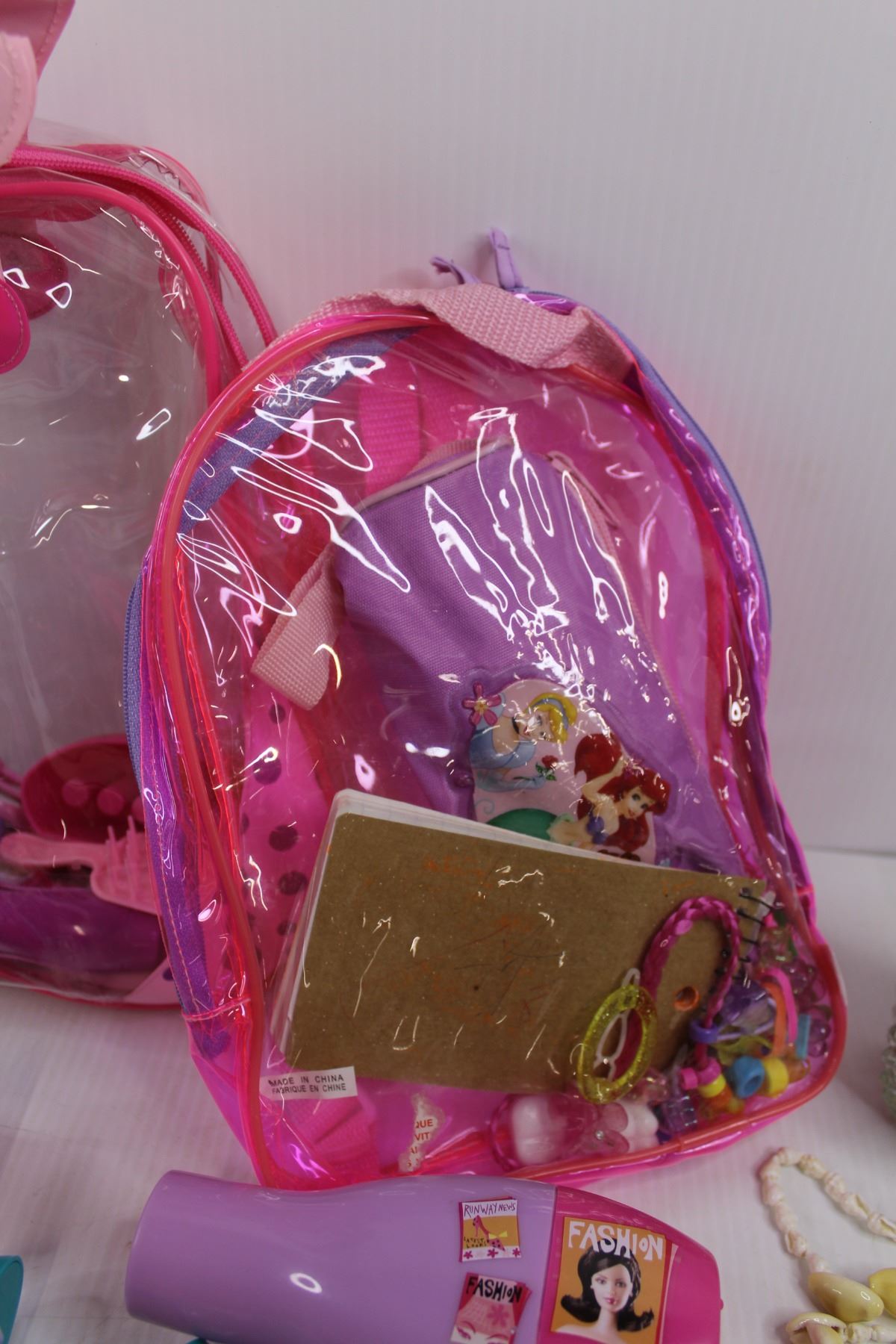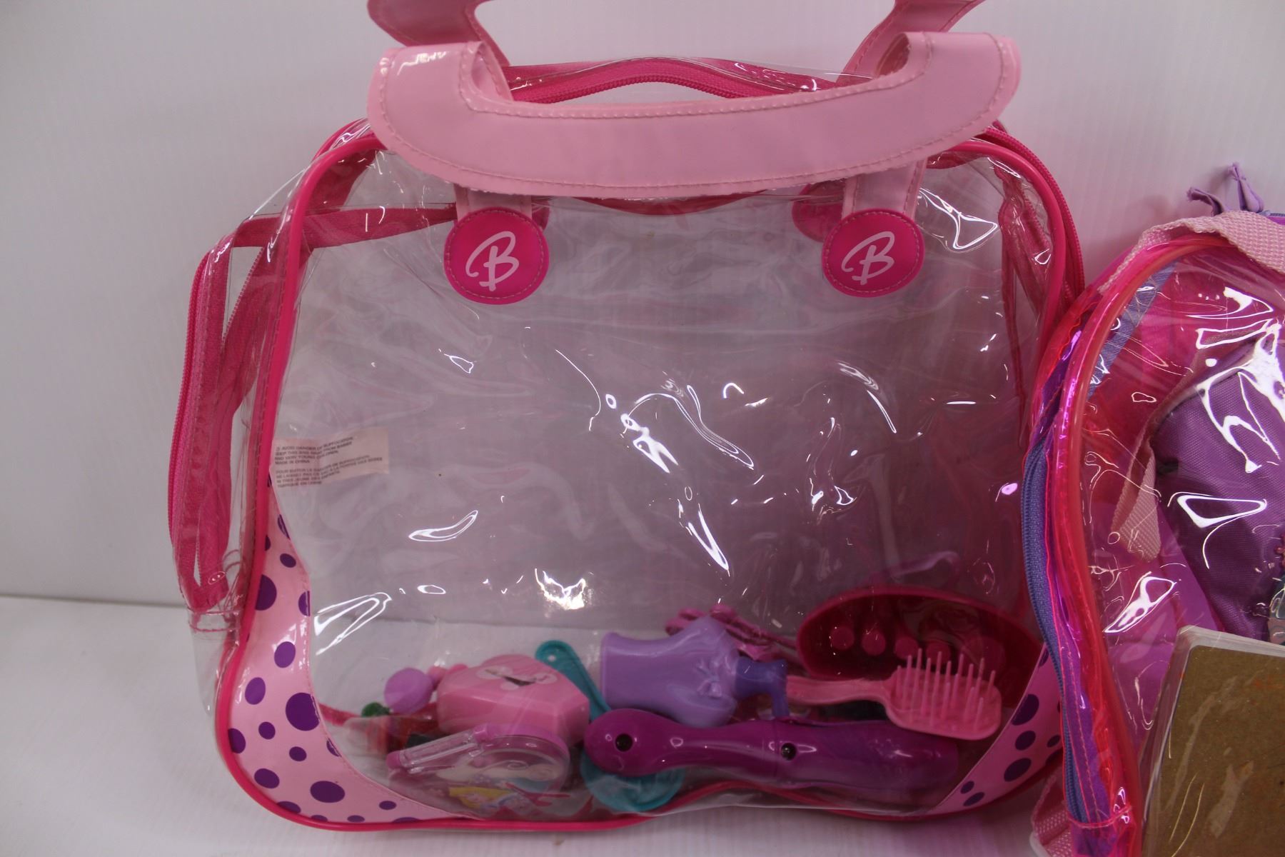 Pink Translucent Kid's Backpack w/ Disney Princess Pencil Case, Clear Plastic Barbie Children's Bag w/ Accessories
