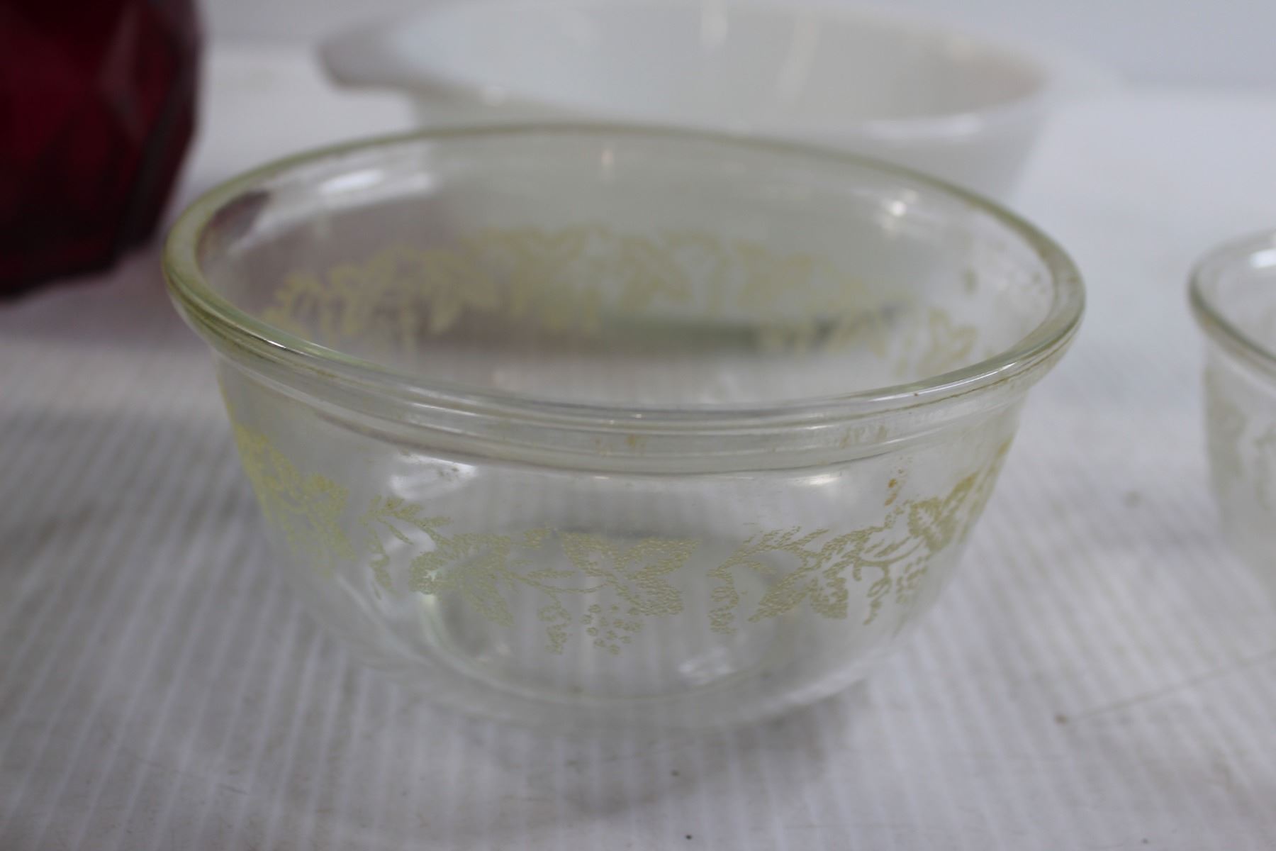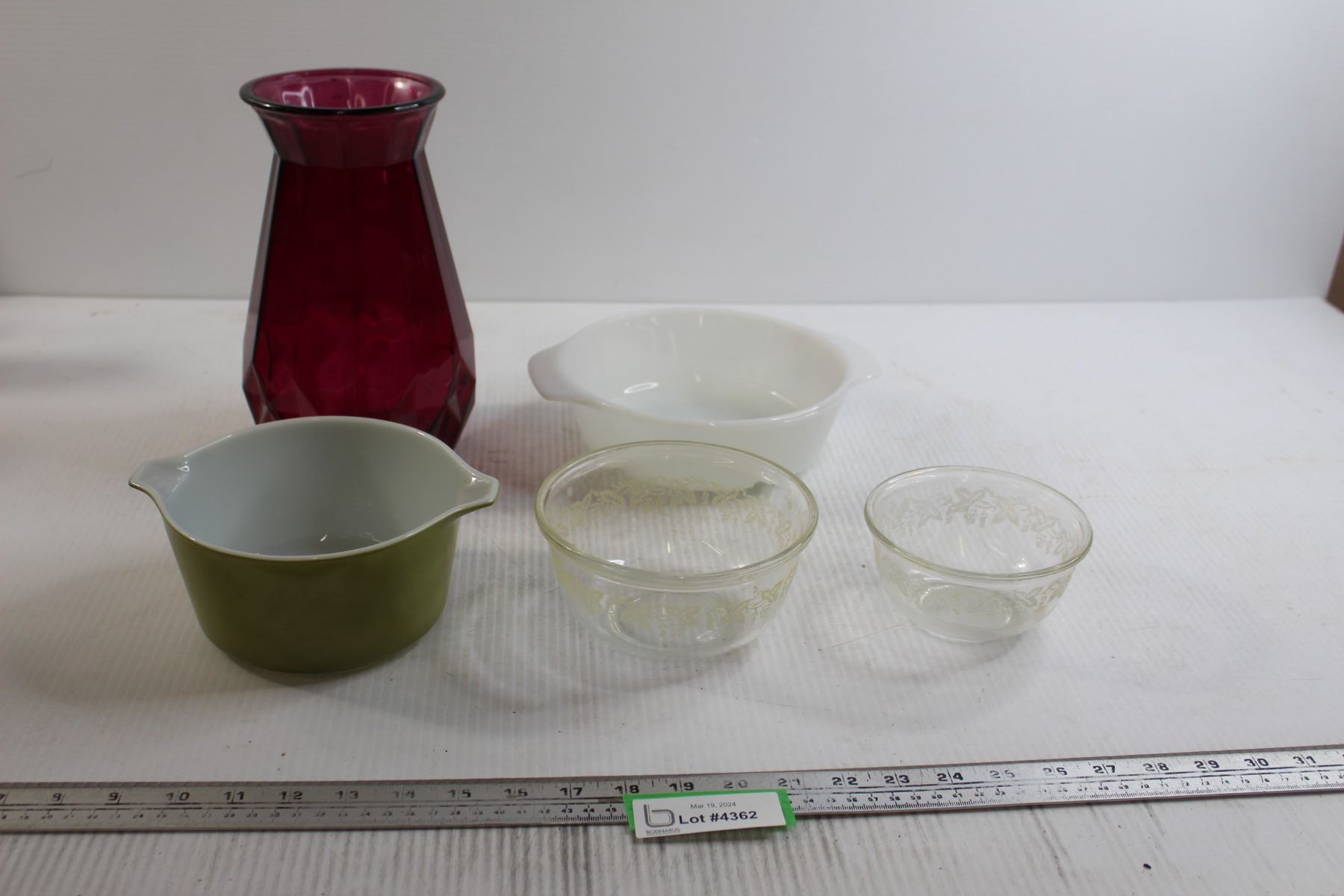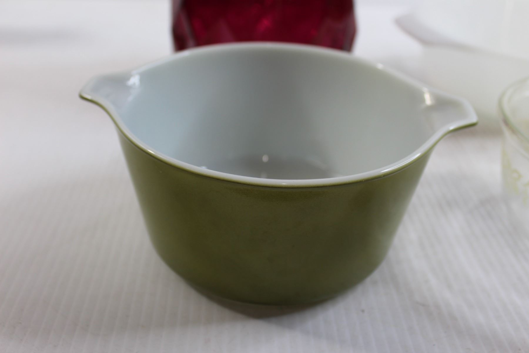 Pink Vase, Pyrex Dish, Bowls