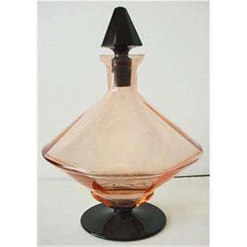 <tr><td>Title:Pink and Black Art Deco Glass Decanter</td></tr>