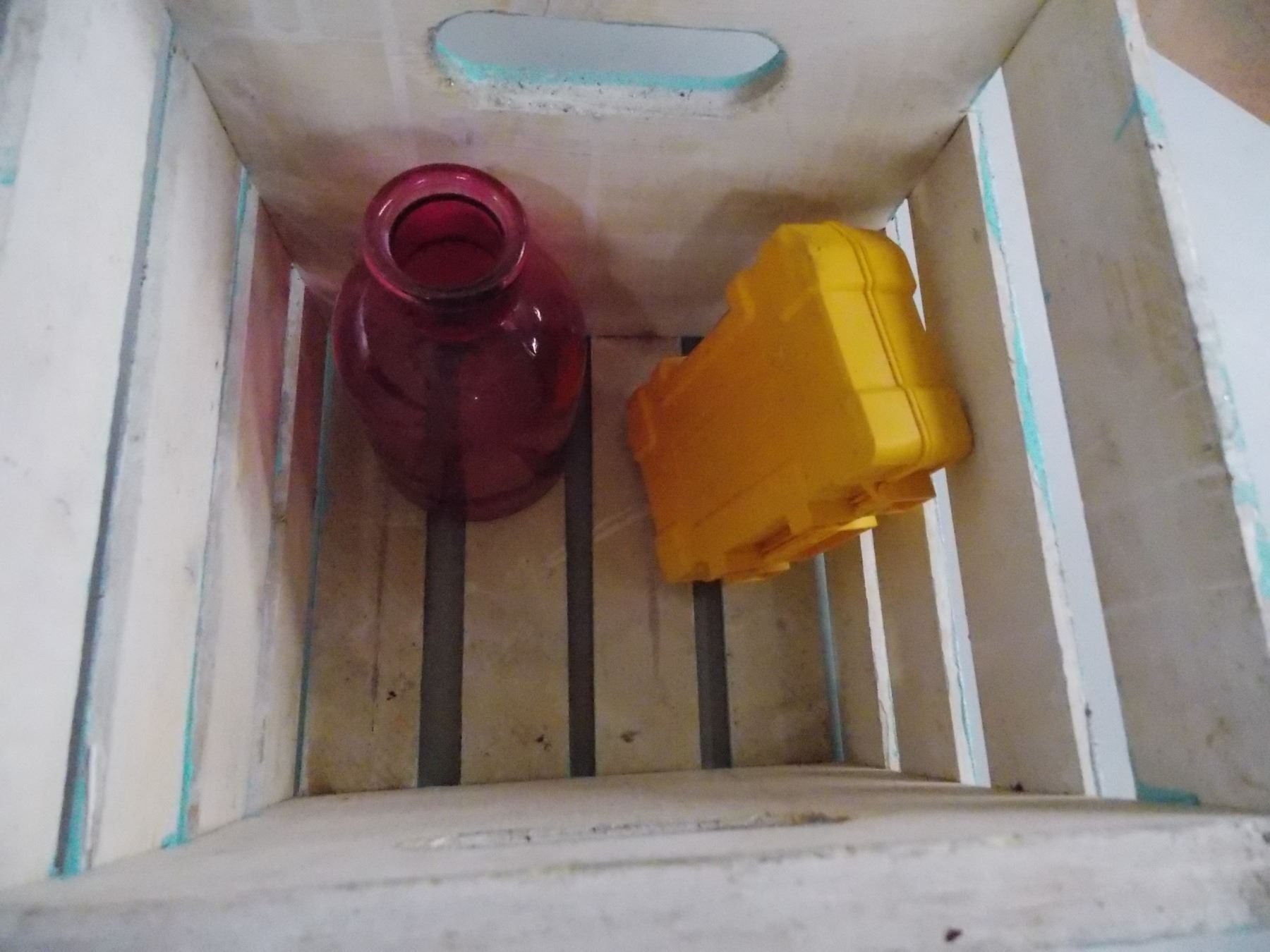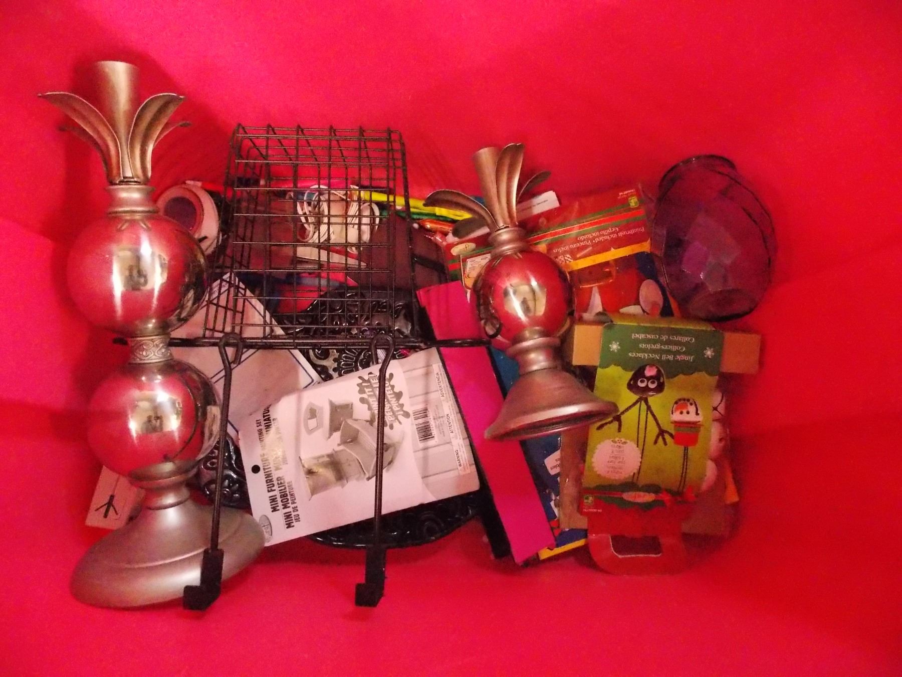 *Pink tote (no lid) with misc household items