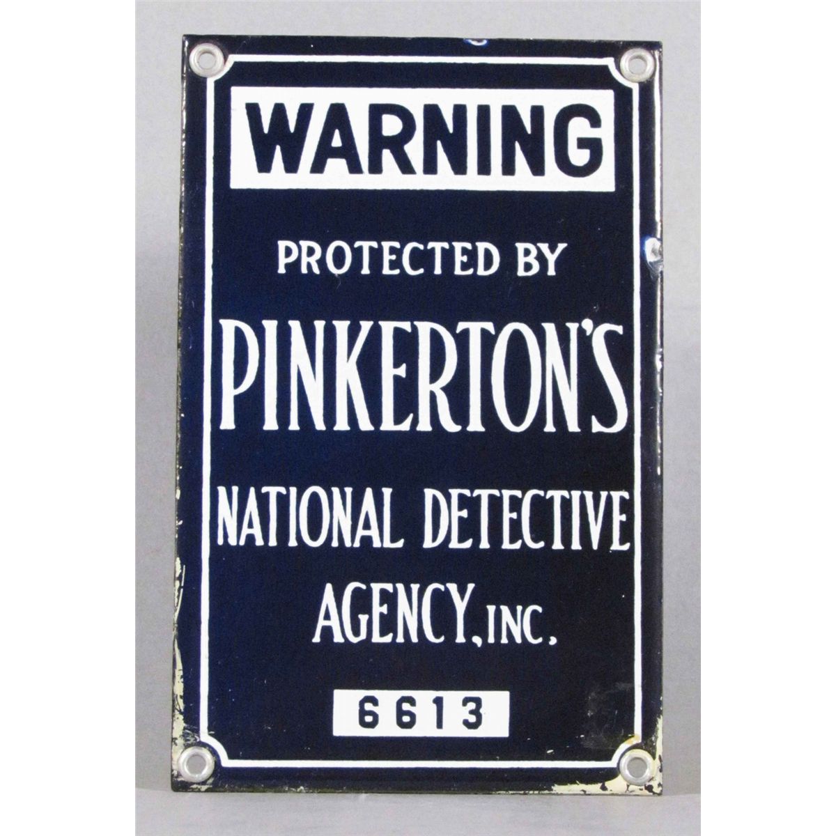 Pinkerton's National Detective Porcelain Sign. Excellent condition. 3 1/2 X 5 1/2 inches. Start Price $70