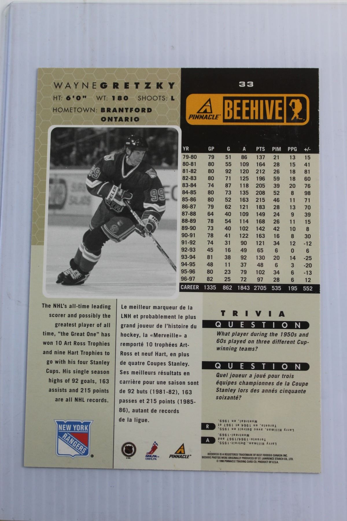 Pinnacle Beehive Wayne Gretzky Hockey Post Card - Authenticity Not Guaranteed