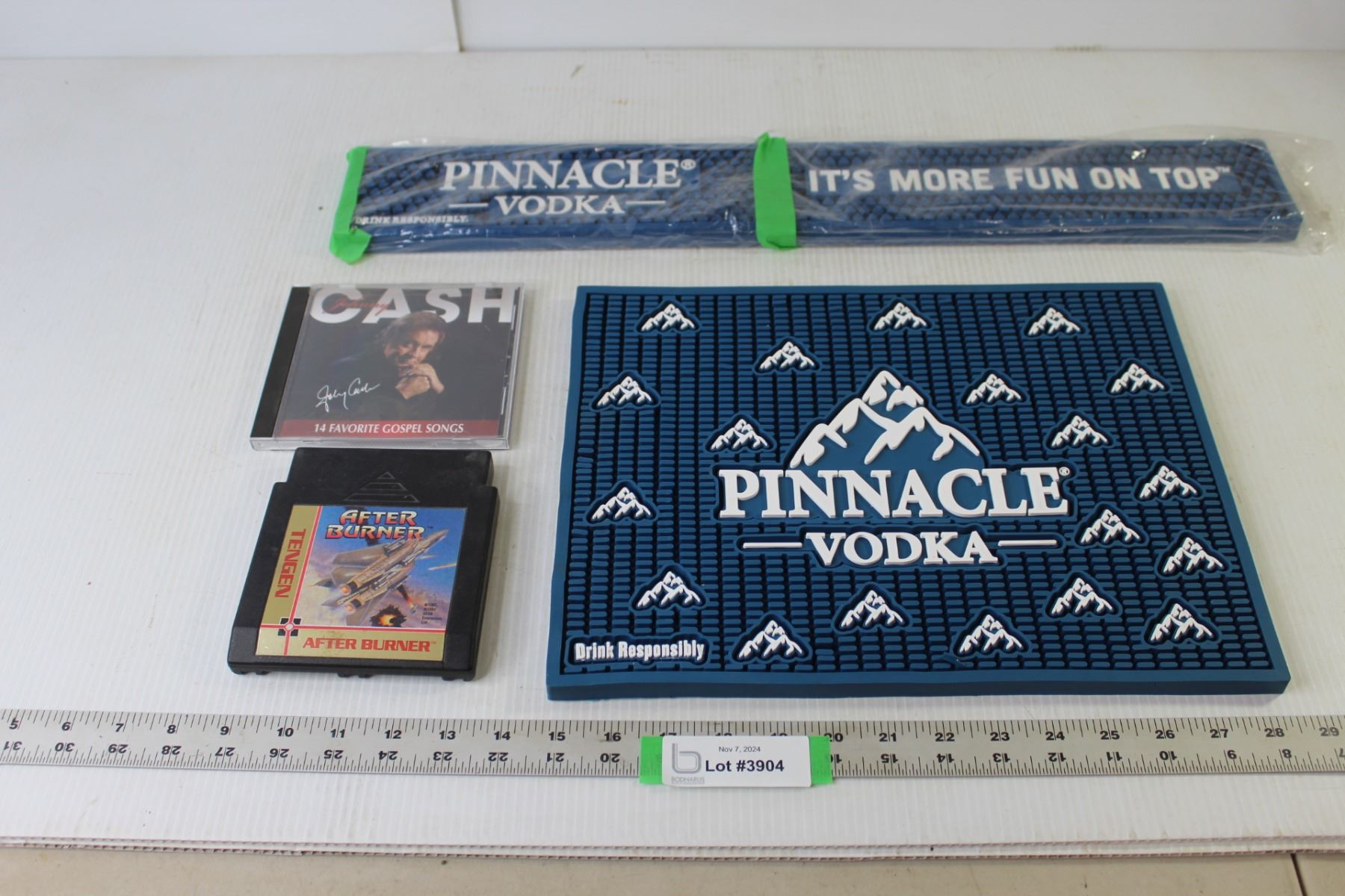 Pinnacle Vodka Rubber Bar Mats, Johnny Cash Gospel CD, Tengen "After Burner" Video Game