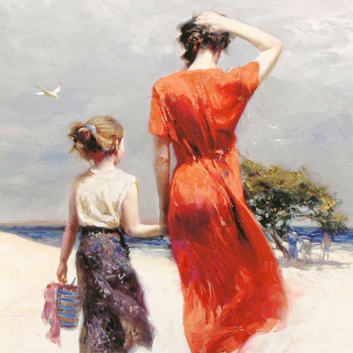 "Afternoon Stroll" is a limited edition giclee on canvas by Pino (1931-2010), numbered and hand signed by the artist. Includes Certificate of Authenticity. Measures approx. 12" x 12" (image). Reference #: 231603.