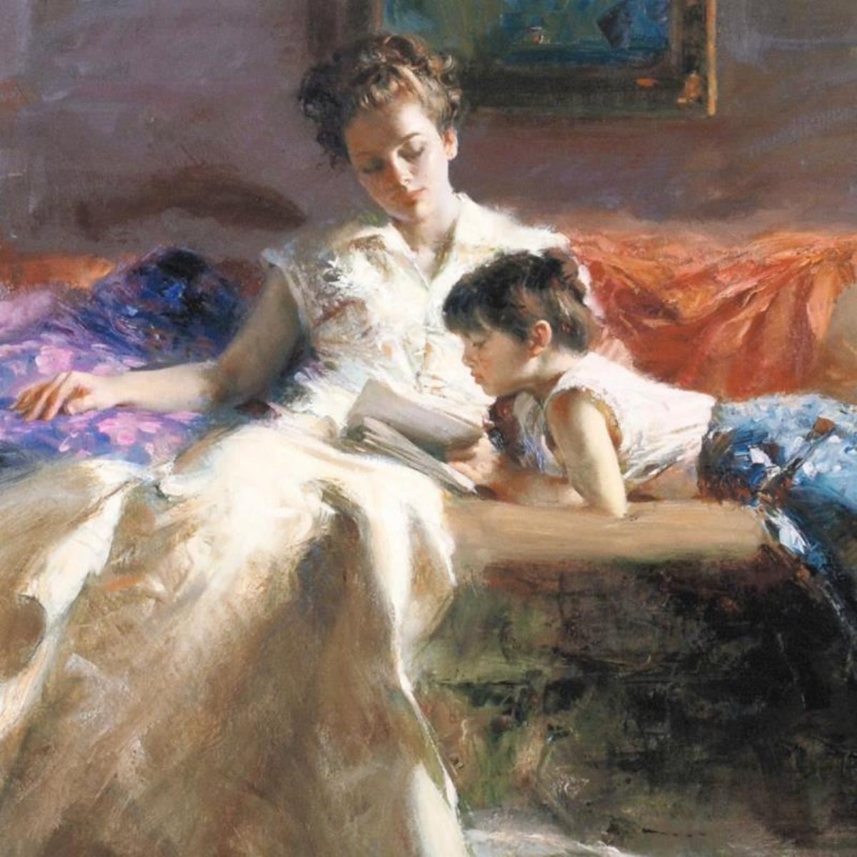 "Late Night Reading" is a limited edition giclee on canvas by Pino (1931-2010), numbered and hand signed by the artist. Includes Certificate of Authenticity. Measures approx. 12" x 16" (image).