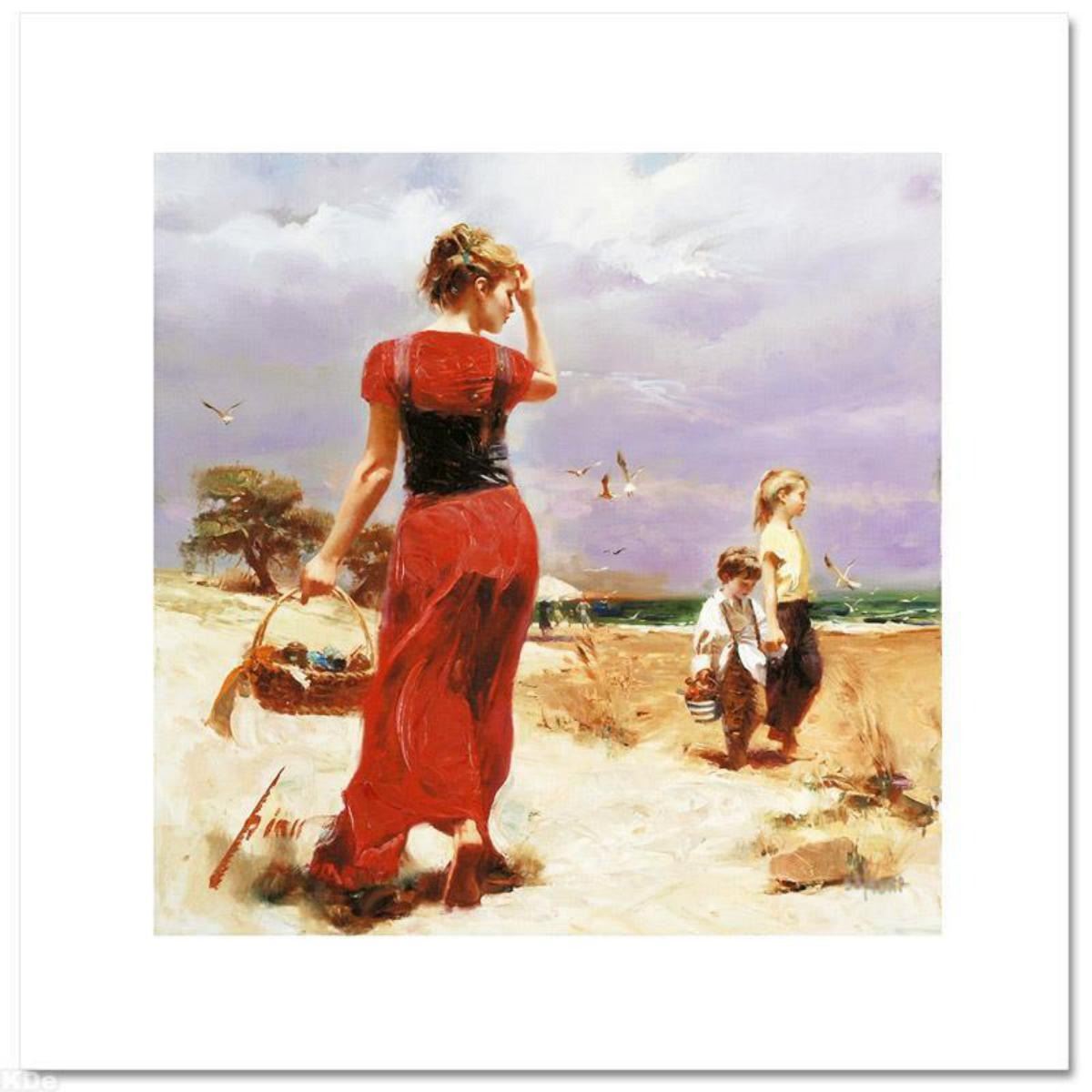 "Seaside Gathering" is a limited edition giclee on canvas by Pino (1931-2010), numbered and hand signed by the artist. Includes Certificate of Authenticity. Measures approx. 12" x 12" (image). Reference #: 231670.