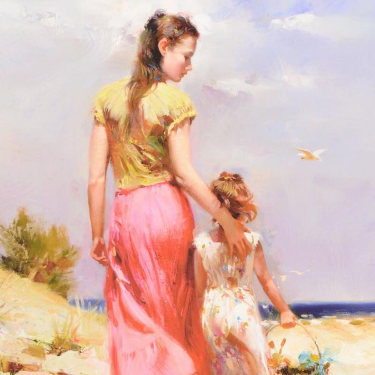 "Seaside Walk" is a limited edition giclee on canvas by Pino (1931-2010), numbered and hand signed by the artist. Includes Certificate of Authenticity. Measures approx. 14" x 18" (image). Reference #: 231672.