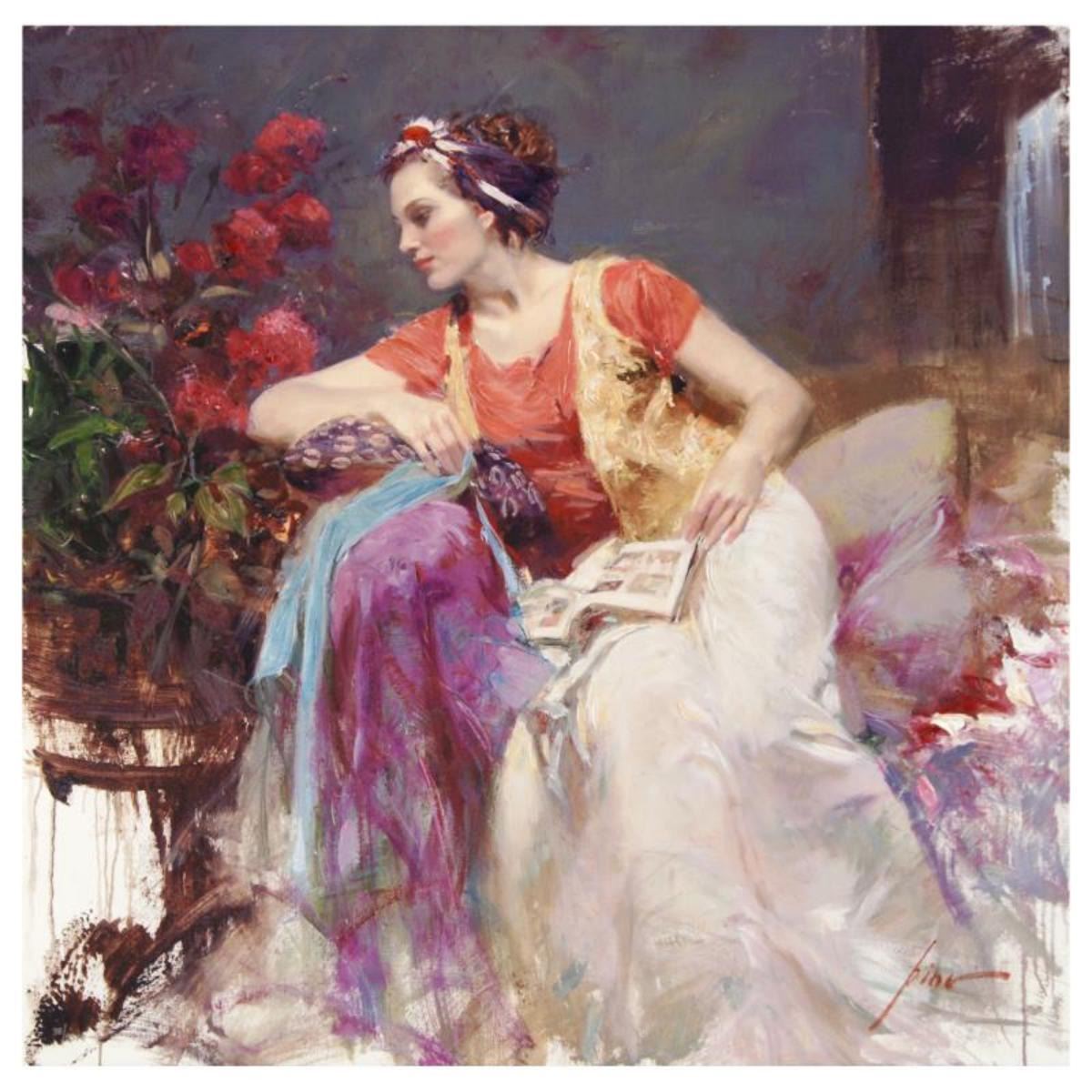 "Serendipity" is a limited edition giclee on canvas by Pino (1931-2010), numbered and hand signed by the artist. Includes Certificate of Authenticity. Measures approx. 12" x 12" (image). Reference #: 231674.