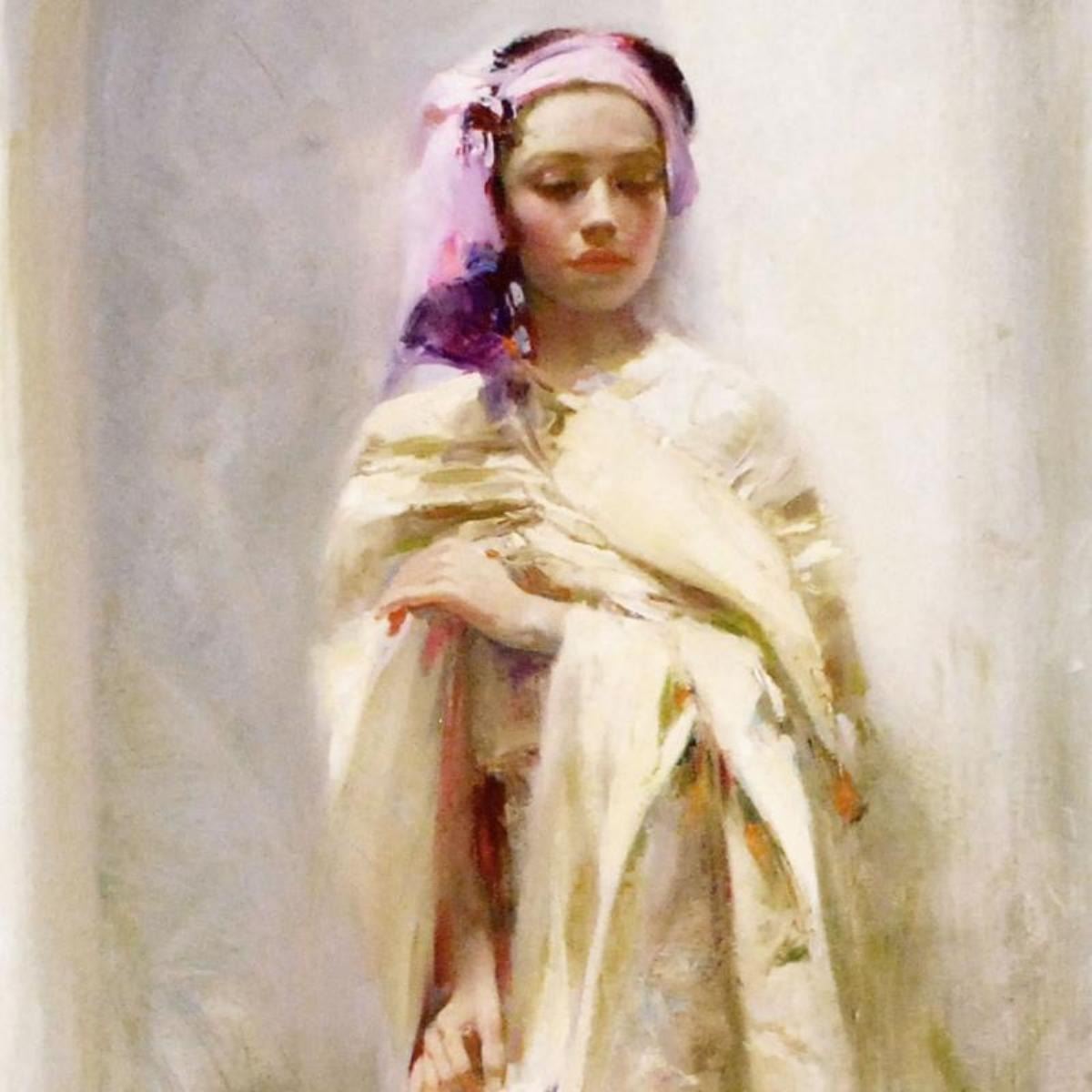 "The Silk Shawl" is a limited edition giclee on canvas by Pino (1931-2010), numbered and hand signed by the artist. Includes Certificate of Authenticity. Measures approx. 12" x 20" (image).