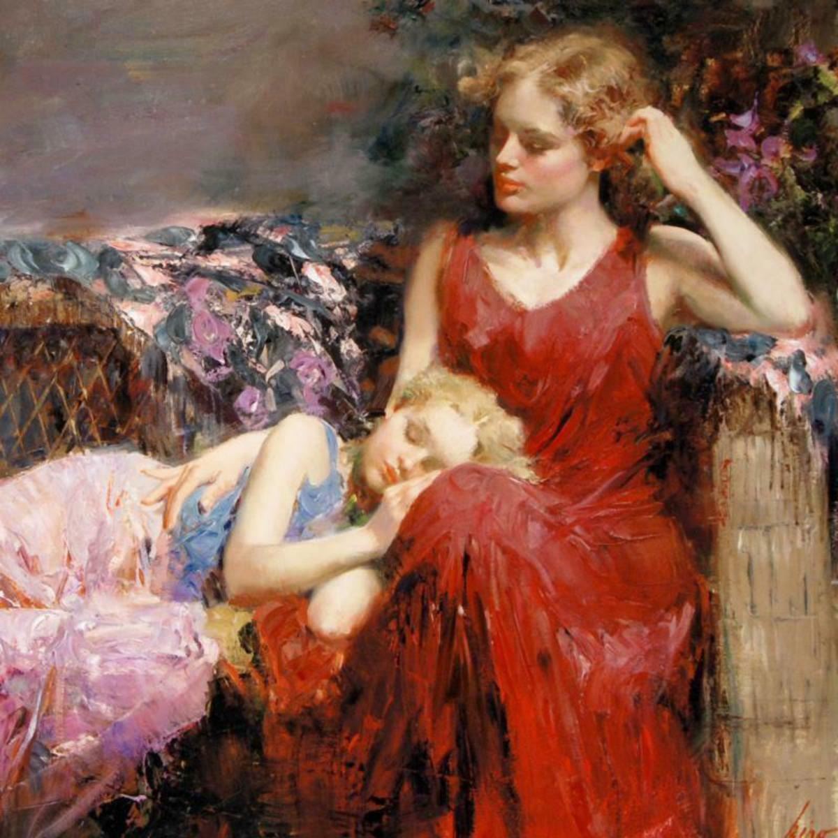 "A Mother's Love" is a limited edition giclee on stretched canvas that has been hand-embellished by Pino himself, AP Numbered and Hand signed by Pino (1939-2010). Includes Certificate of Authenticity. Measures approx. 40" x 30" (image). Reference #: 224580.