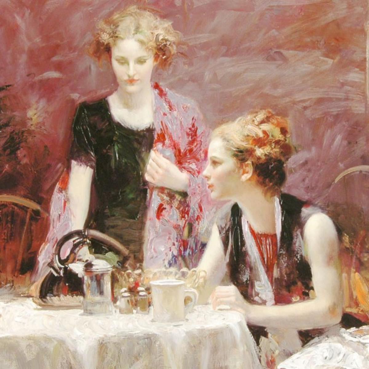"After Dinner" is a limited edition giclee on canvas by Pino (1939-2010), numbered and hand signed by the artist. Includes Certificate of Authenticity. Measures approx. 12" x 14" (image). Reference #: 231601