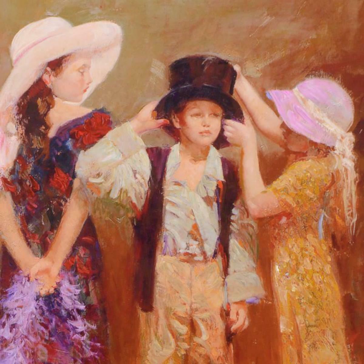 "Dress Up" is a limited edition giclee on stretched canvas that has been hand-embellished by Pino himself, AP Numbered and Hand signed by Pino (1939-2010). Includes Certificate of Authenticity. Measures approx. 30" x 30" (image). Reference #: 224635.