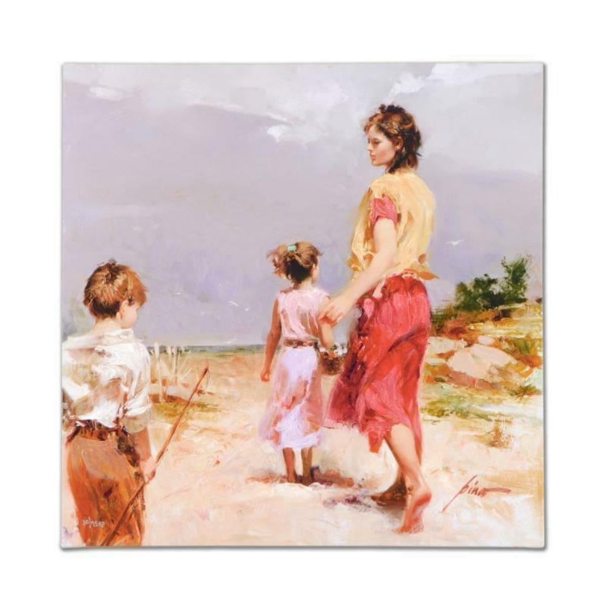"Gone Fishing" is a limited edition giclee on stretched canvas that has been hand-embellished by Pino himself, AP Numbered and Hand signed by Pino (1939-2010). Includes Certificate of Authenticity. Measures approx. 20" x 20" (image).