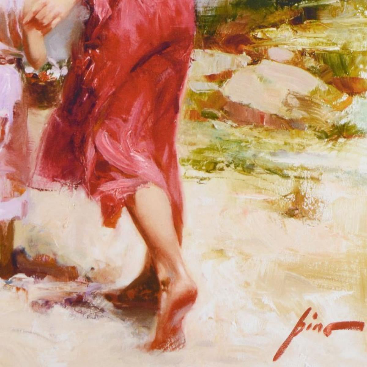 Artist: Pino (1939-2010). Medium: Hand Embellished Giclee on Canvas. Title: Going Fishing. Size (Unframed): 24" x 24". Limited Edition: Hand Signed and Numbered. Certificate of Authenticity: From the publisher. Additional: Pino's portraits allow glimpses into intensely personal, intimate spaces, conveying emotion through rich, warm color and sensual brushwork. "Going Fishing" is an artist-embellished limited edition giclee on canvas by Pino (1939-2010). . Reference# 13506.