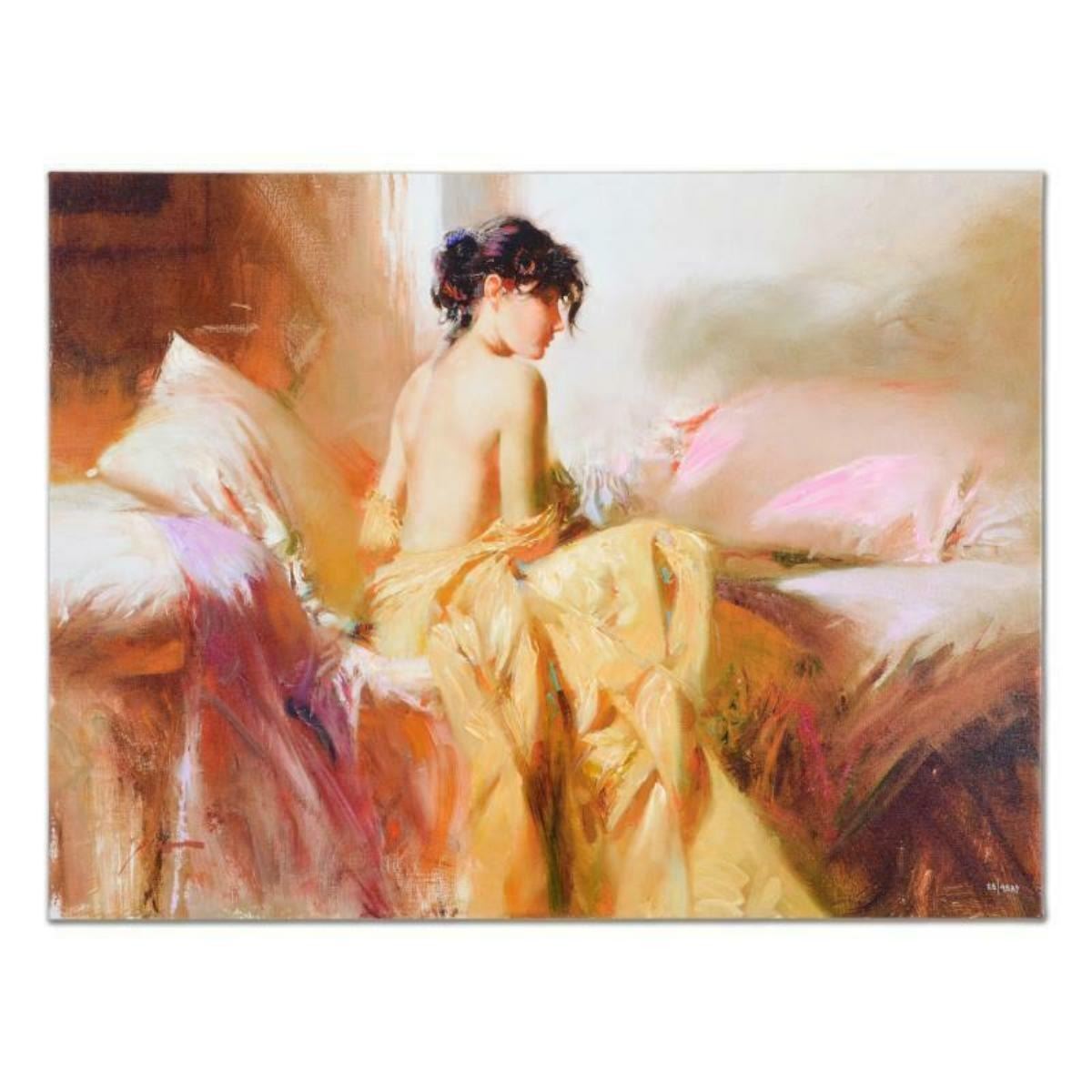 "Royal Beauty" is a limited edition giclee on stretched canvas that has been hand-embellished by Pino himself, AP Numbered and Hand signed by Pino (1939-2010). Includes Certificate of Authenticity. Measures approx. 40" x 30" (image).