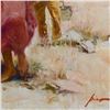 Pino's portraits allow glimpses into intensely personal, intimate spaces, conveying emotion through rich, warm color and sensual brushwork. "Sea Spray" is an artist-embellished limited edition giclee on canvas by Pino (1939-2010). The piece is numbered, hand signed, and includes certificate of authenticity. Measures approximately 40" x 30" (image).