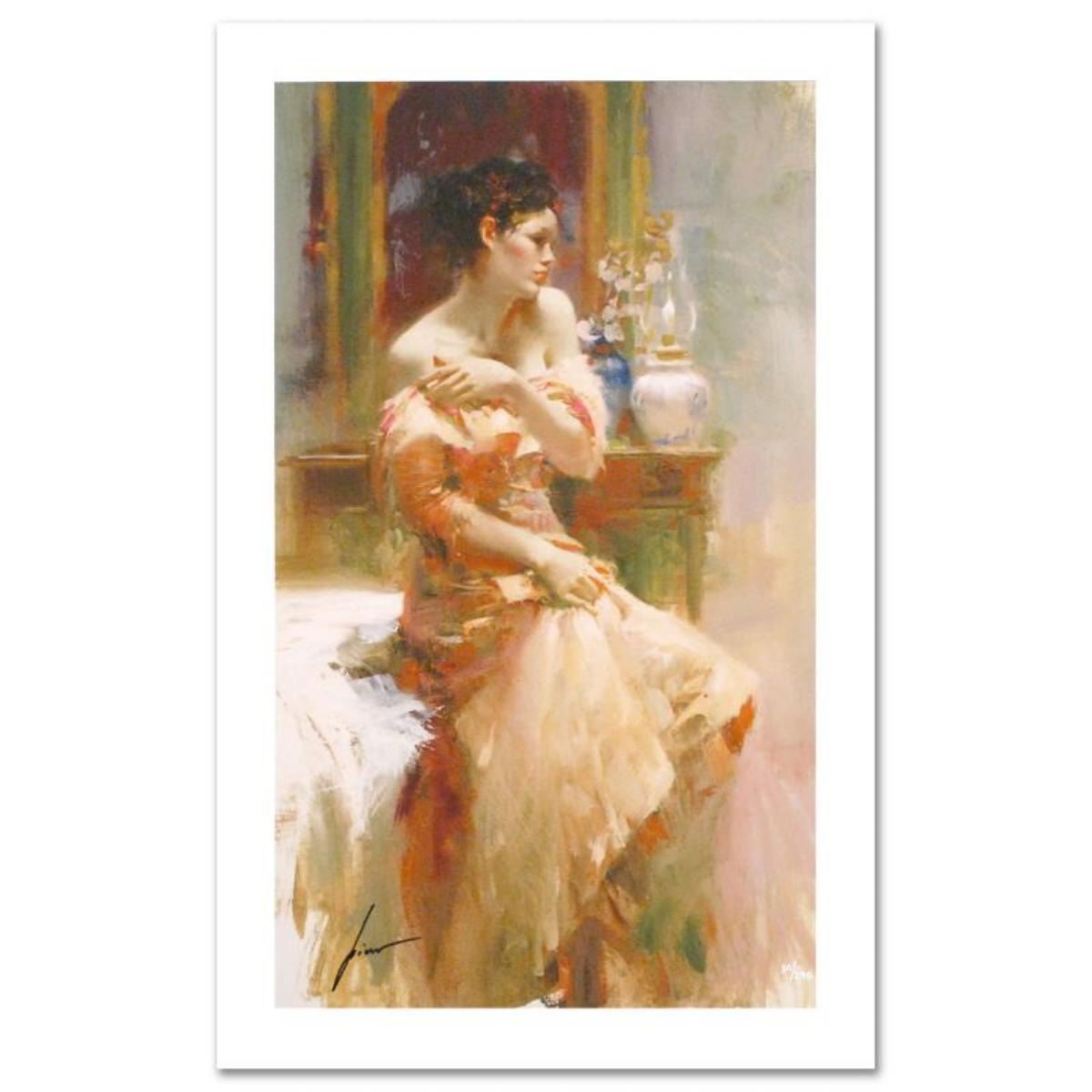 "Silk Taffeta" is a limited edition giclee on paper by Pino (1939-2010). The piece comes numbered and is hand signed by the artist. Includes Certificate of Authenticity. Measures approxiamtely 24 x 14" (image).