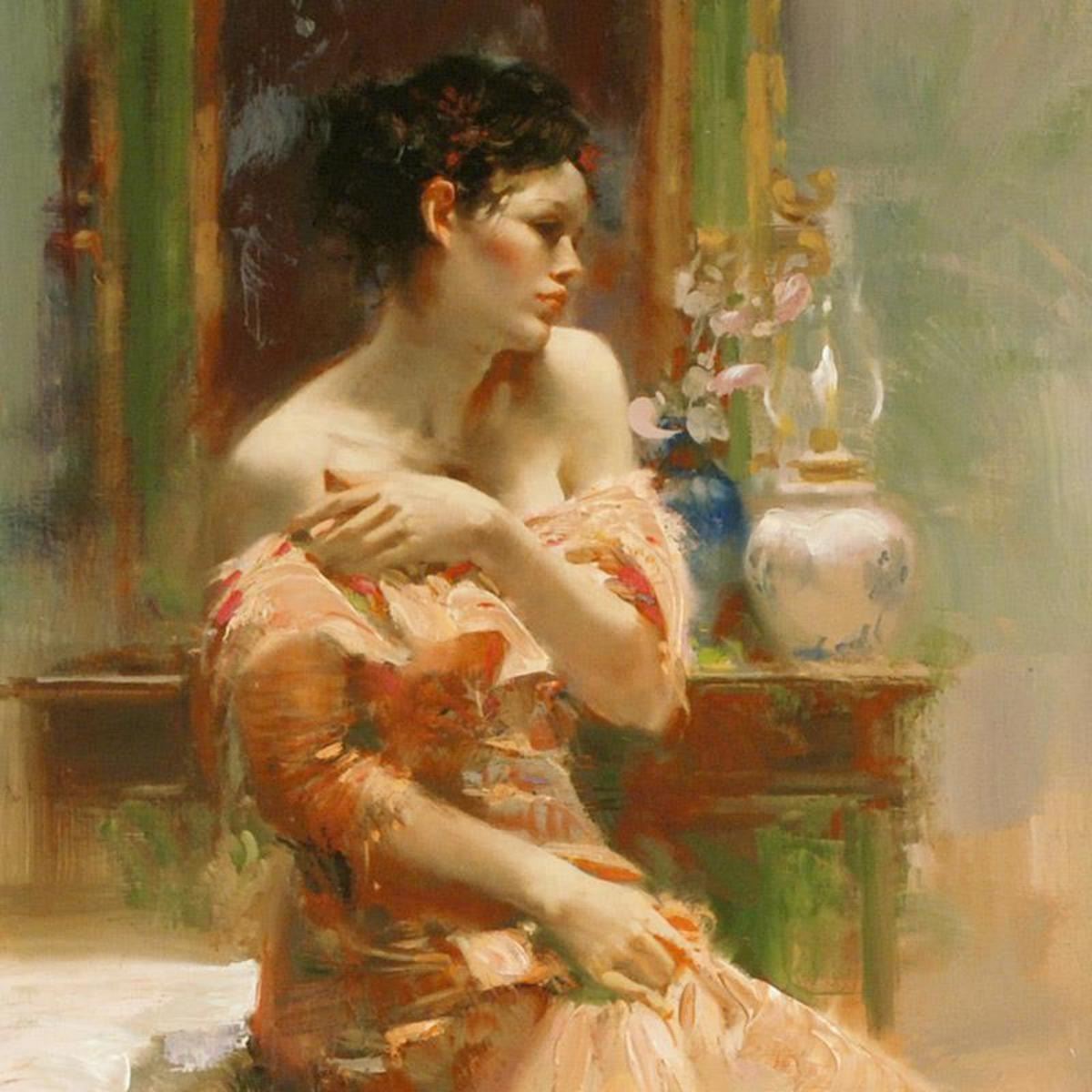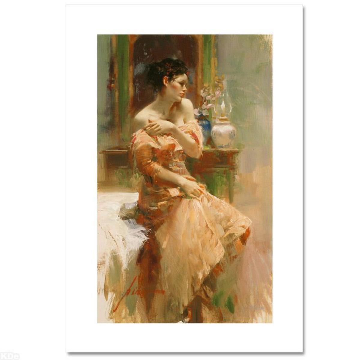 "Silk Taffeta" is a limited edition giclee on canvas by Pino (1939-2010), numbered and hand signed by the artist. Includes Certificate of Authenticity. Measures approx. 12" x 20" (image). Reference #: 231677