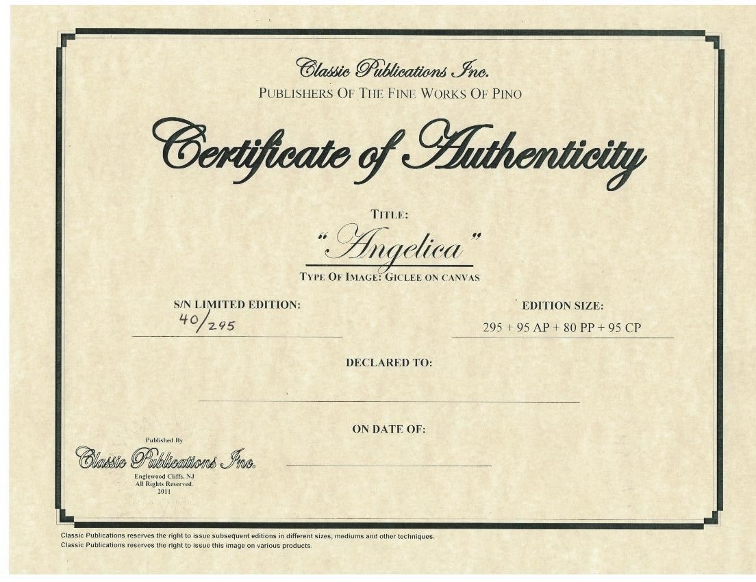 "Angelica" By Pino - Hand Signed Limited Edition Giclee On Canvas - Hand Signed By The Artist - Hand Embellished - Numbered - Comes With Publisher's Authentication - Unframed Size 42" X 24"