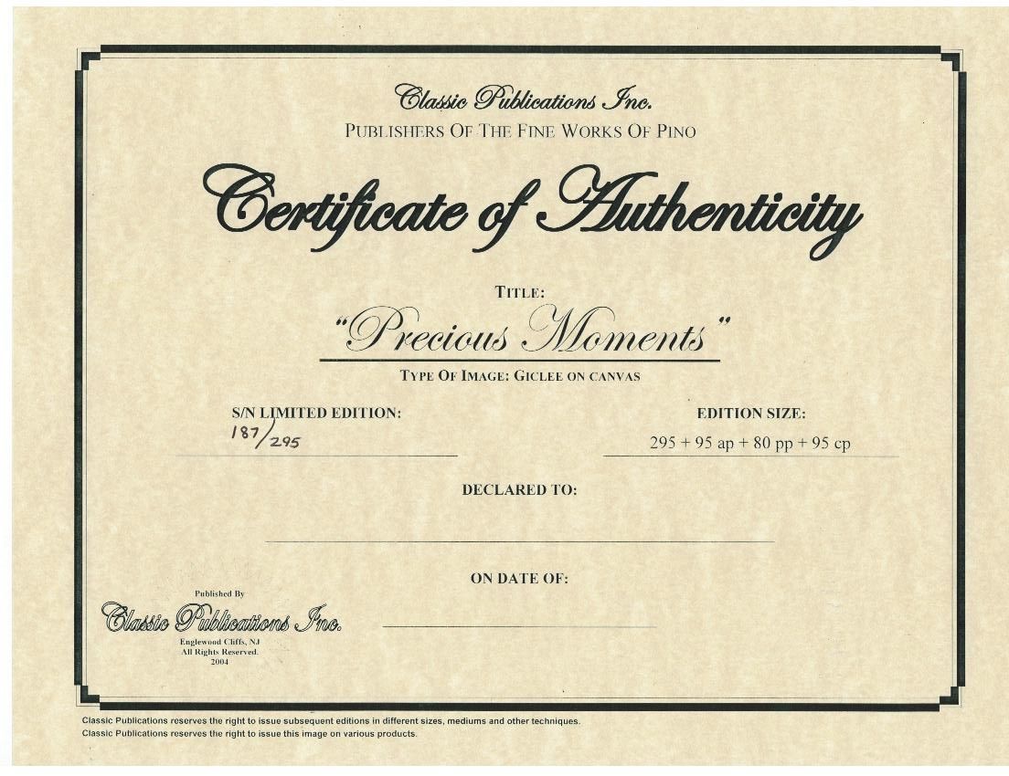"Precious Moments" By Pino - Hand Signed Limited Edition Giclee On Canvas - Hand Signed By The Artist - Hand Embellished - Numbered - Comes With Publisher's Authentication - Unframed Size 36 X 48