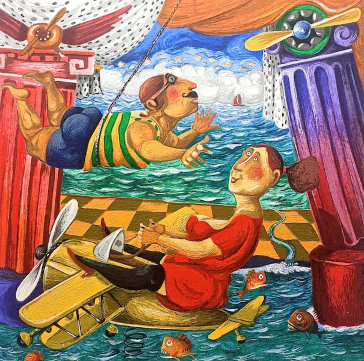 Artist: Pino Procopio. Medium: Original Serigraph. Title: CASA DELL'AVIERE. Size: 40x40cm. Hand Signed and Numbered. Pino Procopio was born in 1954 in Guardavalle, Calabria. He enjoyed modelling clay since nursery school. In middle school he made erotic drawings, for which he was reproached many times. He attended the art school and then enrolled at the faculty of Architecture in Rome, never neglecting his artistic activity. In the 1970s, during his walks through Rome, he started to attend some of the galleries. His first exhibition opened in Rome at the La Bitta art centre in 1980. After that, he had a flourishing artistic career, rich in productions and exhibitions in the major Italian towns. Procopios artworks express irony, sarcasm and even cynicism. His artistic expression is provocative, without preconceptions, revelation of an intellectual delicacy. Now Procopio is recognised among the greatest Italian and international masters of the 20th century.: Pino Procopio was born in 1954 in Guardavalle, Calabria. He enjoyed modelling clay since nursery school. In middle school he made erotic drawings, for which he was reproached many times. He attended the art school and then enrolled at the faculty of Architecture in Rome, never neglecting his artistic activity. In the 1970s, during his walks through Rome, he started to attend some of the galleries. His first exhibition opened in Rome at the La Bitta art centre in 1980. After that, he had a flourishing artistic career, rich in productions and exhibitions in the major Italian towns. Procopios artworks express irony, sarcasm and even cynicism. His artistic expression is provocative, without preconceptions, revelation of an intellectual delicacy. Now Procopio is recognised among the greatest Italian and international masters of the 20th century..