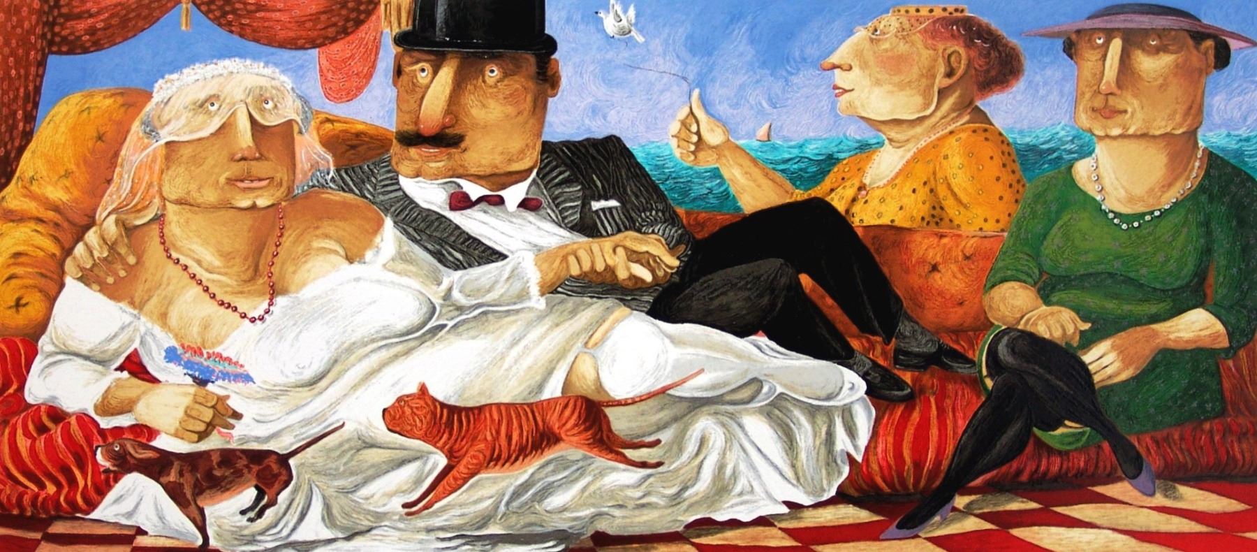 Artist: Pino Procopio. Medium: Original Serigraph. Title: SPOSI DI PANTELLERIA. Size: 65x120cm. Hand Signed and Numbered. Pino Procopio was born in 1954 in Guardavalle, Calabria. He enjoyed modelling clay since nursery school. In middle school he made erotic drawings, for which he was reproached many times. He attended the art school and then enrolled at the faculty of Architecture in Rome, never neglecting his artistic activity. In the 1970s, during his walks through Rome, he started to attend some of the galleries. His first exhibition opened in Rome at the La Bitta art centre in 1980. After that, he had a flourishing artistic career, rich in productions and exhibitions in the major Italian towns. Procopios artworks express irony, sarcasm and even cynicism. His artistic expression is provocative, without preconceptions, revelation of an intellectual delicacy. Now Procopio is recognised among the greatest Italian and international masters of the 20th century.: Pino Procopio was born in 1954 in Guardavalle, Calabria. He enjoyed modelling clay since nursery school. In middle school he made erotic drawings, for which he was reproached many times. He attended the art school and then enrolled at the faculty of Architecture in Rome, never neglecting his artistic activity. In the 1970s, during his walks through Rome, he started to attend some of the galleries. His first exhibition opened in Rome at the La Bitta art centre in 1980. After that, he had a flourishing artistic career, rich in productions and exhibitions in the major Italian towns. Procopios artworks express irony, sarcasm and even cynicism. His artistic expression is provocative, without preconceptions, revelation of an intellectual delicacy. Now Procopio is recognised among the greatest Italian and international masters of the 20th century..